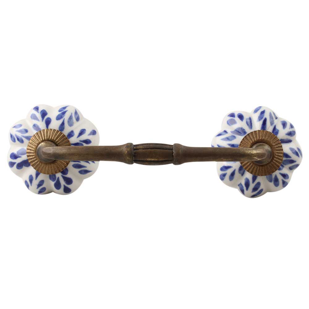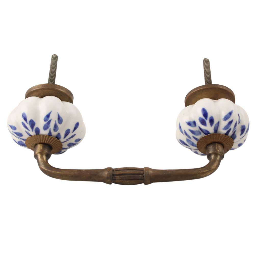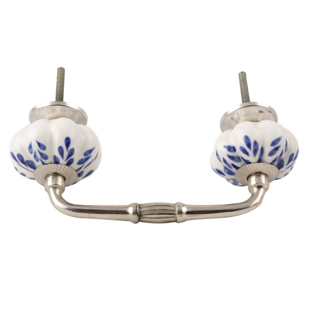 Blue Leaf Ceramic Melon Bridge Handle. Ideal for Drawer, Dresser, Cabinet, Wardrobe, Cupboard and Almirah etc.