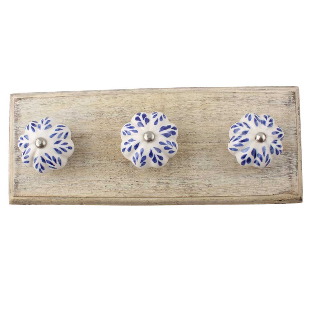 Blue Leaf Ceramic Melon Wooden Hook. A Perfect Complement to the Soft Tone of the Wood are these White Traditional Hat and Coat Hook Made of Genuine Porcelain and Brass. It can be used to Hang Jewelry, Leashes, Towels, Scarves, Light Weight Sweaters, Caps etc.