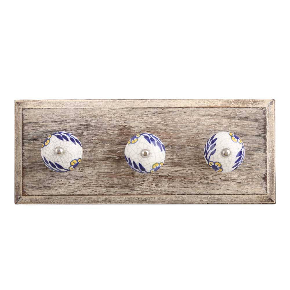 Blue Leaf Crackle Ceramic Wooden Hook. A Perfect Complement to the Soft Tone of the Wood are these White Traditional Hat & Coat Hook Made of Genuine Porcelain and Brass. It can be use to Hang Jewellery, Leashes, Towels, Scarves, Light Weight Sweaters, Caps Etc.