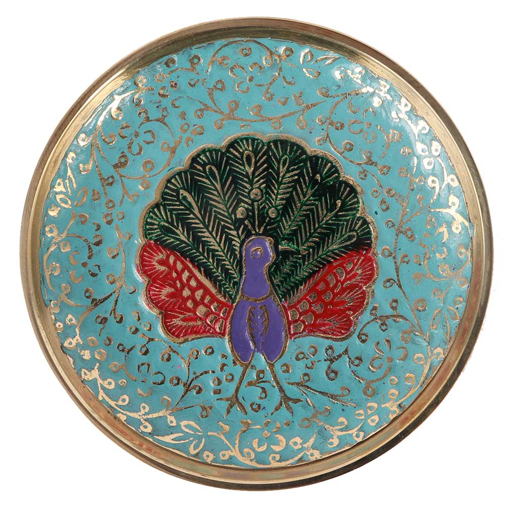 This brass coaster with a peacock design makes an ideal housewarming or festival present. It may also be used for rituals, festival puja, weddings, kanjaks, langar, or as a stand for a flower vase or other home decoration.