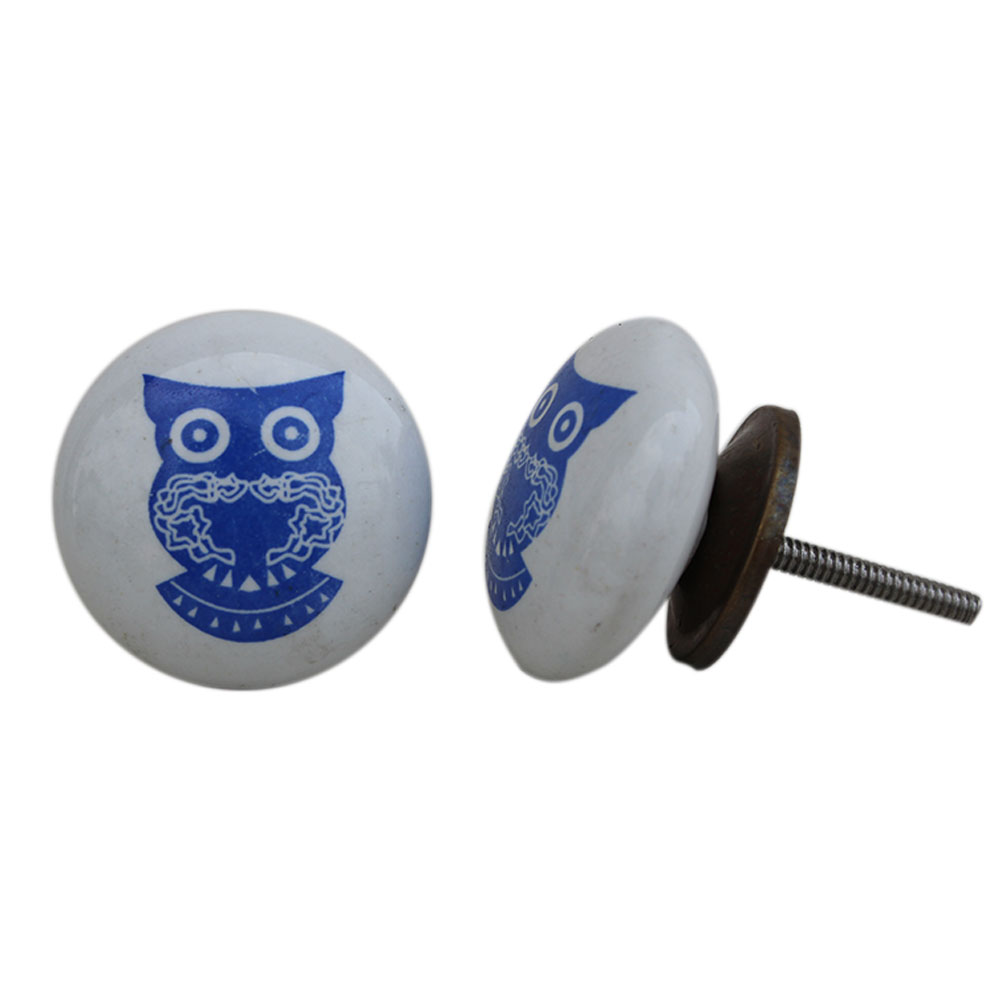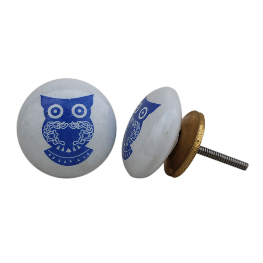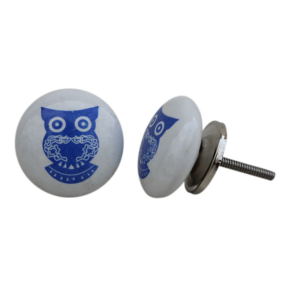 Blue Owl Flat Ceramic Knob. Ideal for kitchen cabinets, kitchen drawers, dining room, bed room, chest drawers, dressing tables, almirah