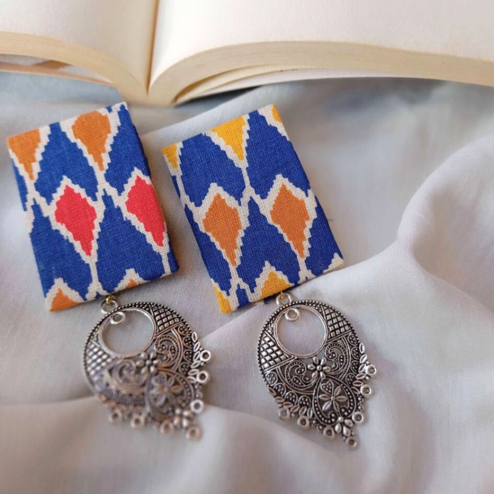 Style these earrings with solid kurtas, linen dresses, or Indo-western outfits, and store them in a dry pouch to preserve the fabric print.
