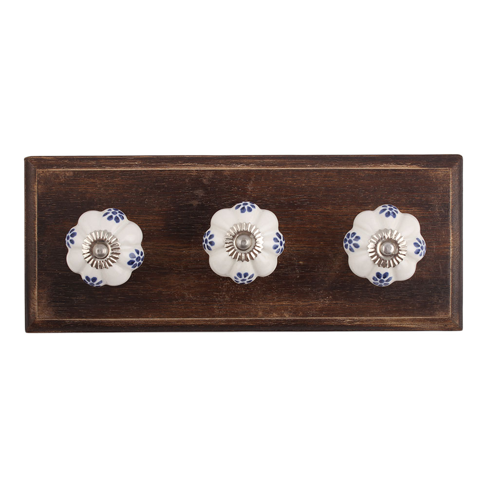 Blue Protea Ceramic Wooden Hook. A Perfect Complement to the Soft Tone of the Wood are these White Traditional Hat & Coat Hook Made of Genuine Porcelain and Brass. It can be use to Hang Jewellery, Leashes, Towels, Scarves, Light Weight Sweaters, Caps Etc.