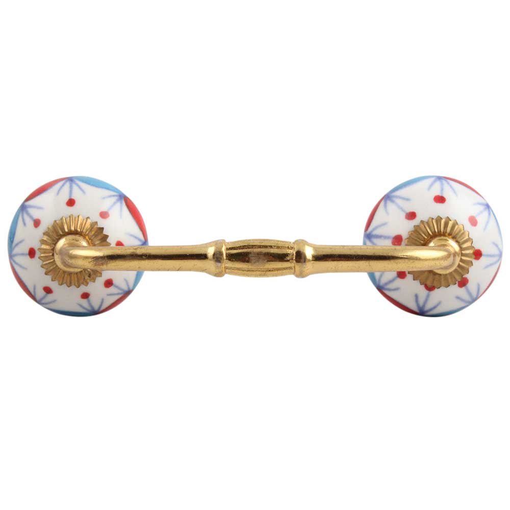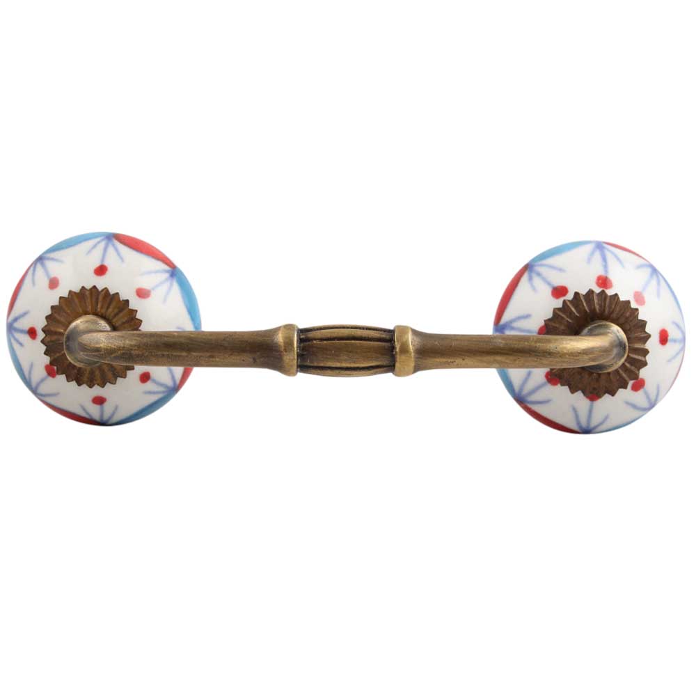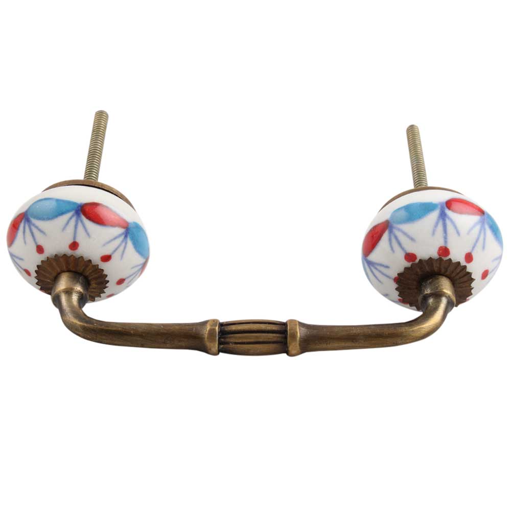 Blue Red Design Ceramic Bridge Handle. Ideal for Drawer, Dresser, Cabinet, Wardrobe, Cupboard and Almirah.