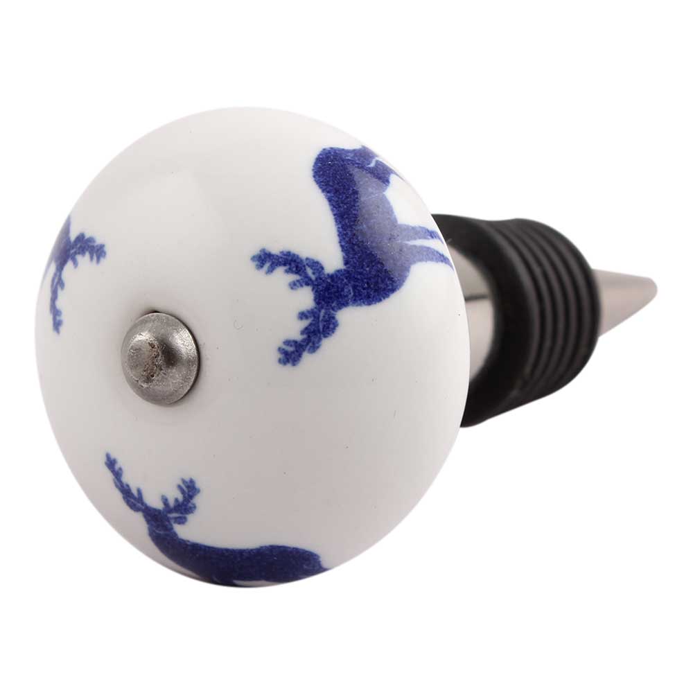 Blue Standing Rein Deer Pattern Ceramic Wine Stopper.zinc alloy wine bottle stopper with attractive Jute Bag Packaging.