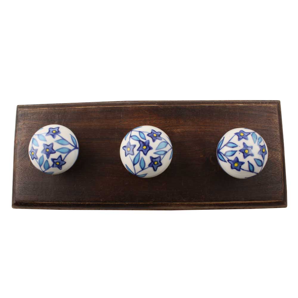 The Blue Star Ceramic Floral Wooden Hook brings a handcrafted touch of personality to your space. Featuring a vivid star-shaped floral design in deep blue, the hand-painted ceramic knob sits on a smooth, warm Natural wood base. Designed to be more than just a wall hook, this piece adds a punch of color, pattern, and texture—making even the most practical corners of your home feel curated. Whether used alone or grouped with others, it effortlessly blends beauty with utility.