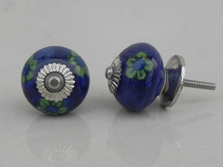 Blue Tiny Floral ceramic knob. Ideal for kitchen cabinets, kitchen drawers, dining room, bed room, chest drawers, dressing tables, almirah