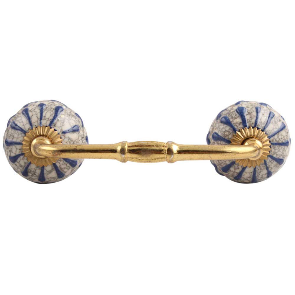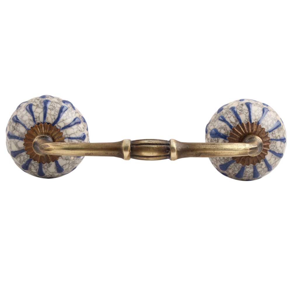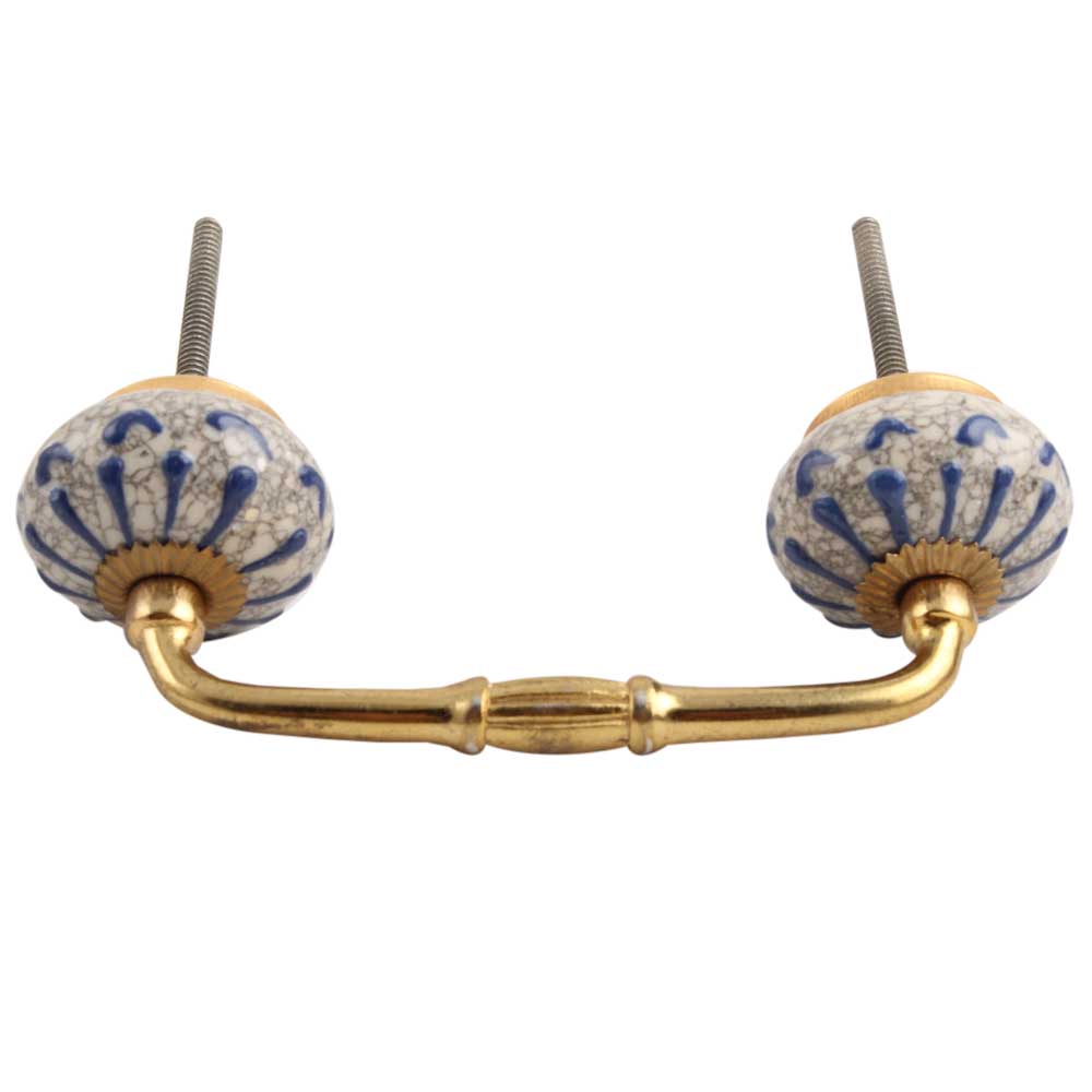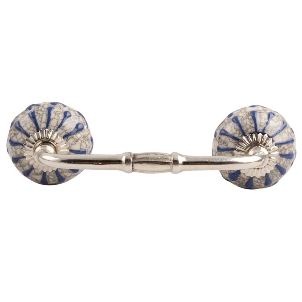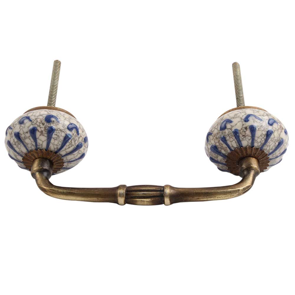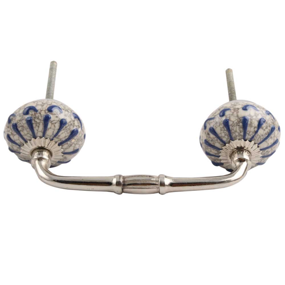 Blue Wheel Crackle Ceramic Bridge Handle. Ideal for Drawer, Dresser, Cabinet, Wardrobe, Cupboard and Almirah.