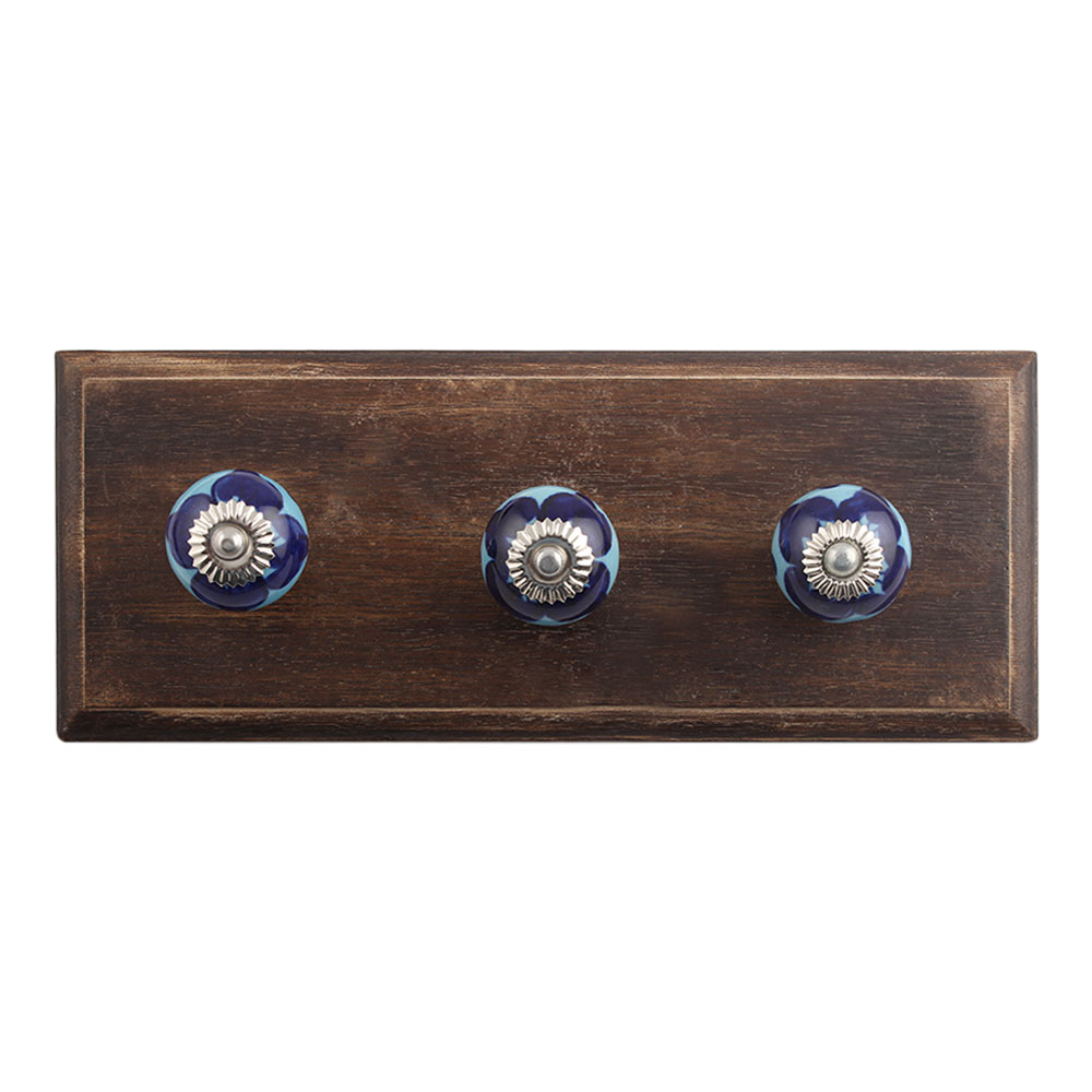 Blueanemone Flower Ceramic Wooden Hook. A Perfect Complement to the Soft Tone of the Wood are these White Traditional Hat & Coat Hook Made of Genuine Porcelain and Brass. It can be use to Hang Jewellery, Leashes, Towels, Scarves, Light Weight Sweaters, Caps Etc.