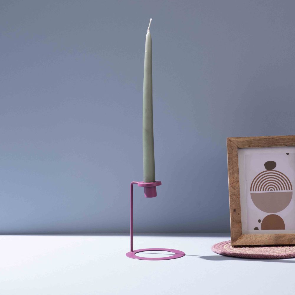 The Blush Aura Metal Candle Stand combines modern design with a soft blush finish, creating a striking yet subtle centerpiece for any room. Made from durable metal, it features a sleek, elegant silhouette that enhances the ambiance of your space. Perfect for holding taper candles, this candle stand adds warmth and sophistication to your dining table, living room, or bedroom, making it an ideal décor accent for any occasion.