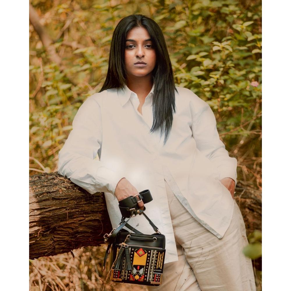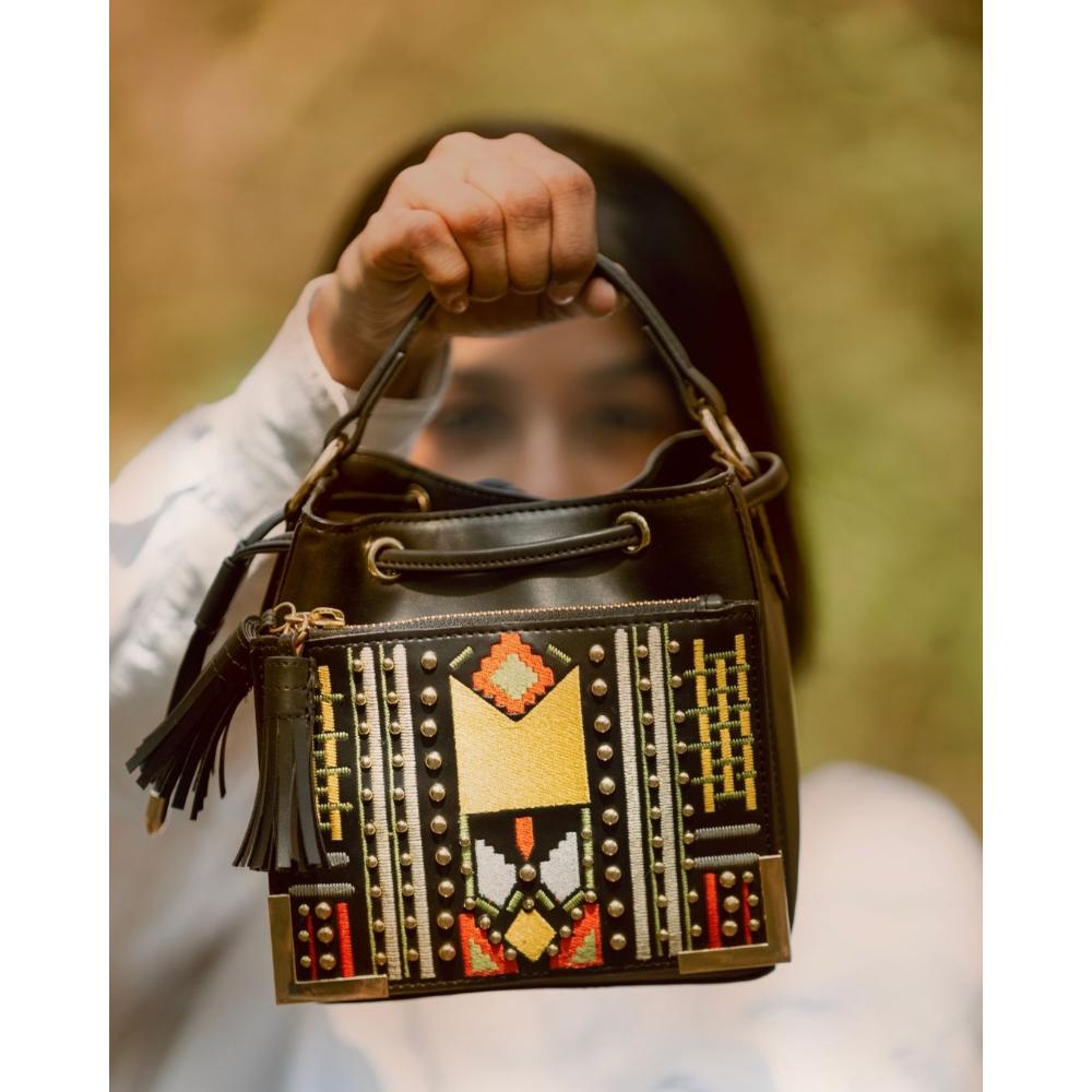 This bohemian, vibrant, tribal vegan leather sling bag embodies bohemian, vibrant, tribal and vegan leather craftsmanship. Ideal for collectors of unique accessories, it offers a statement of style and function. Packed & quality-checked by Indianshelf.