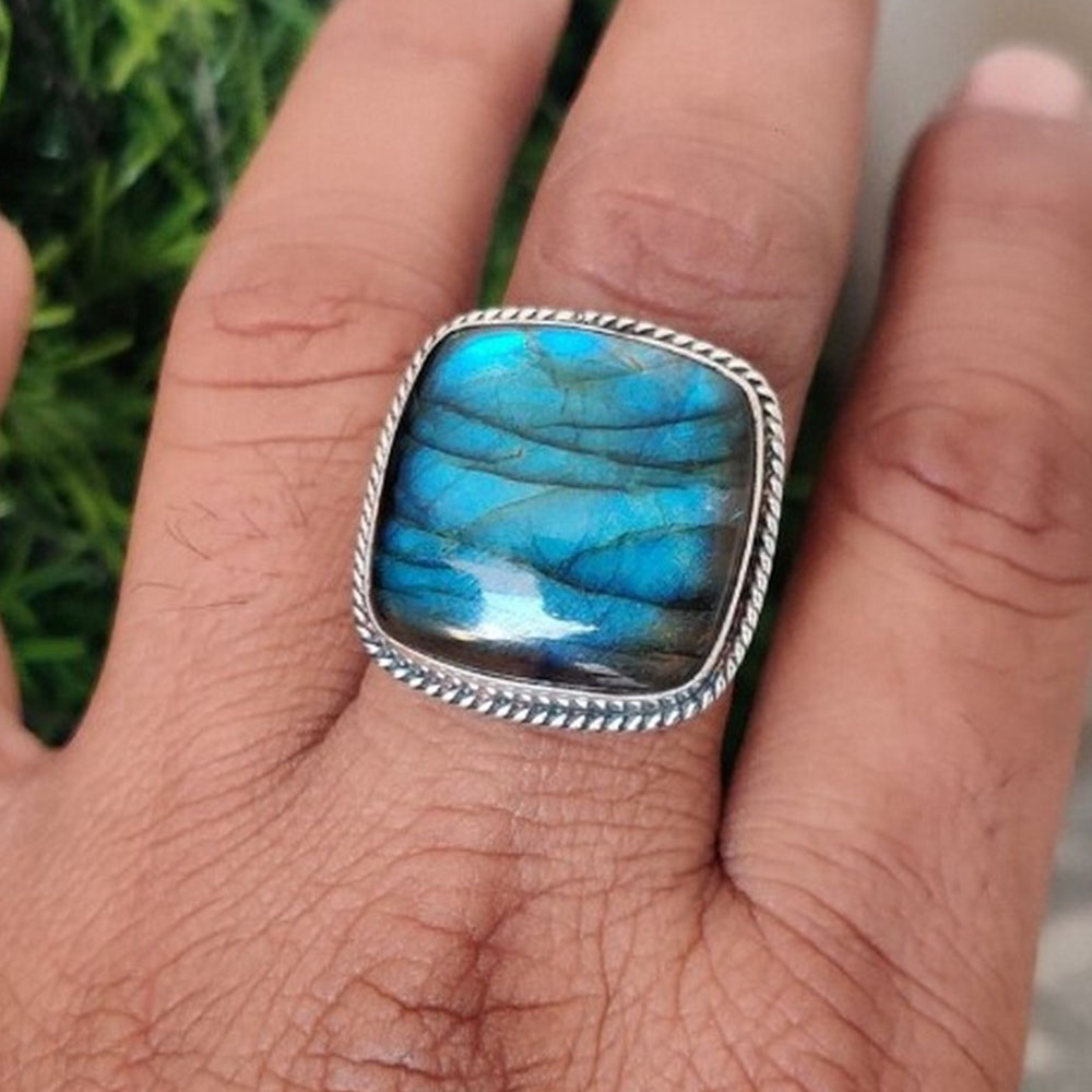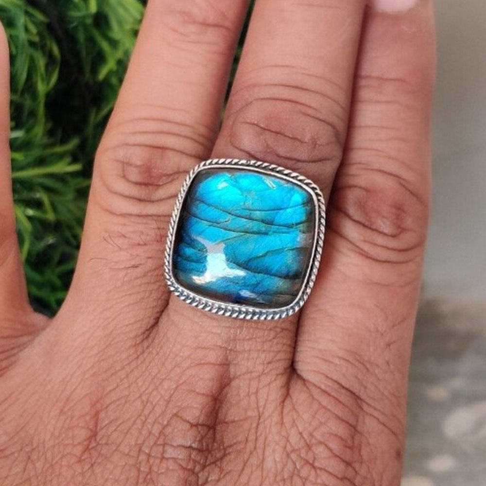 Discover the allure of our boho labradorite silver ring 925 sterling silver handmade gemstone jewelry, where natural labradorite, 925 sterling silver and boho come together to create a spiritual connection. This ring is for decor enthusiasts, each piece reflecting individuality and care. Packed & quality-checked by Indianshelf.