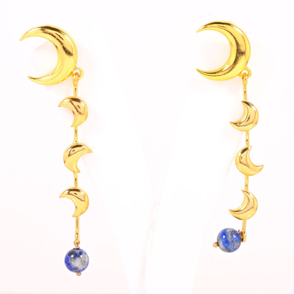 Style these earrings with solid-colour outfits or evening wear to let the lapis gemstone stand out, and store them in a dry pouch to preserve the gold-plated finish.