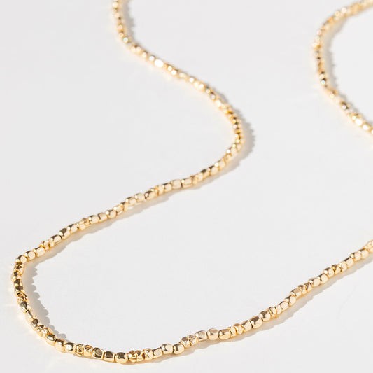 Keep the necklace dry and wipe gently after use to preserve the shine of the beads and the gold-plated brass accents.