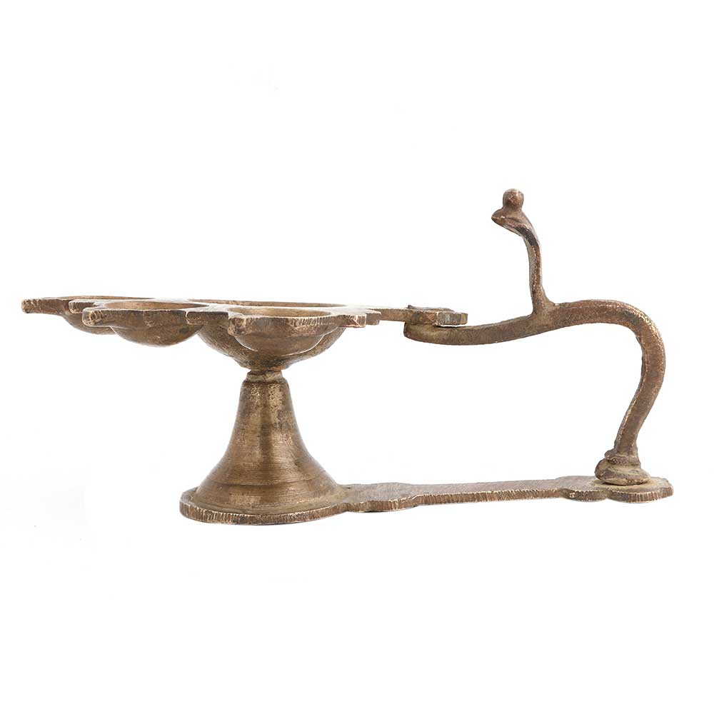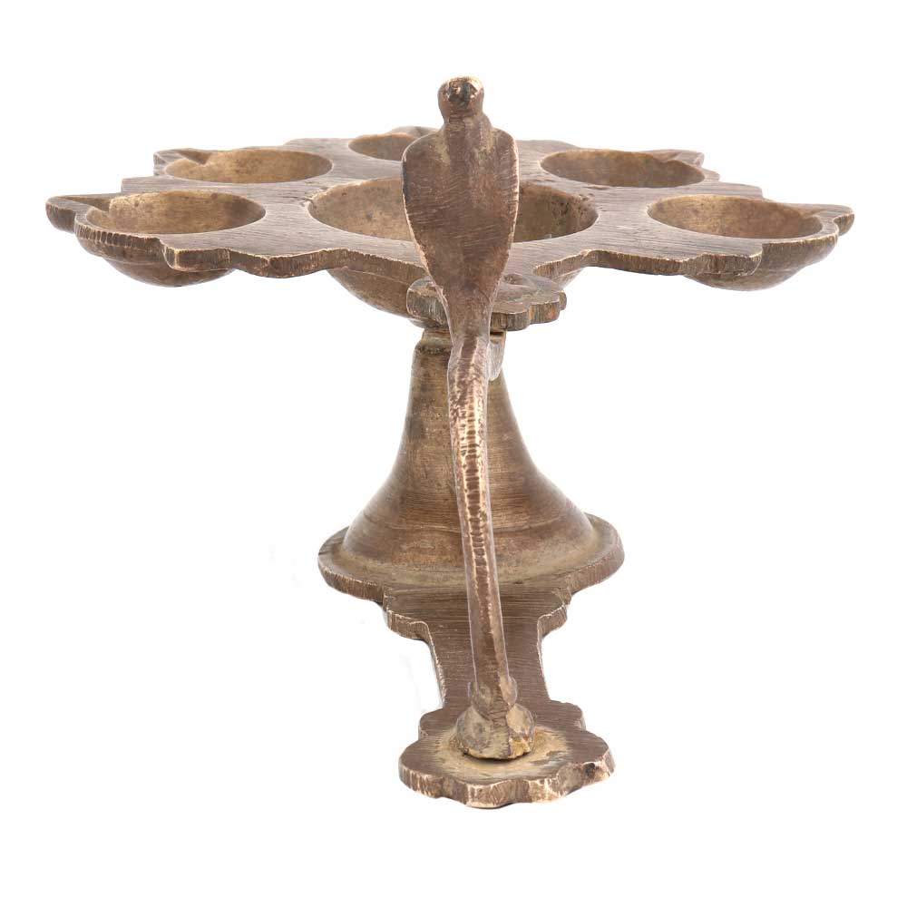 Brass 6 Wick Or Cavity With Cobra Head And Long Handle .Diwali gift, new year gift, stage decoration, worship lamp for temples and other places of worship Diwali, New Year ,weddings , engagement or inauguration ceremonies.. Perfect gift for your near and dear ones.