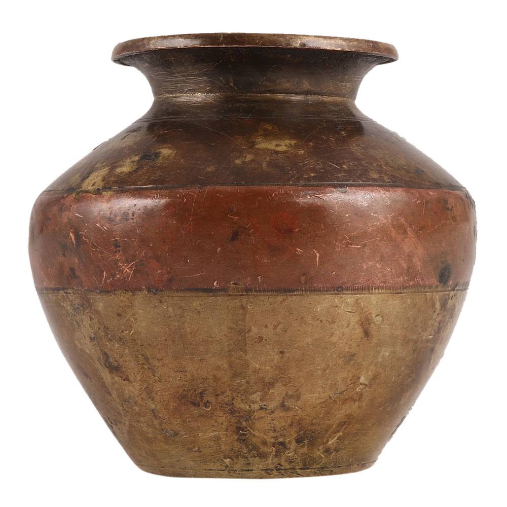 This is an excellent conversation piece made with copper and brass in the traditional Ganga Jamuna technique by local artisans using traditional tools and methods. Pooja gift, temple adornment, wedding present, stage decoration for close friends and family.