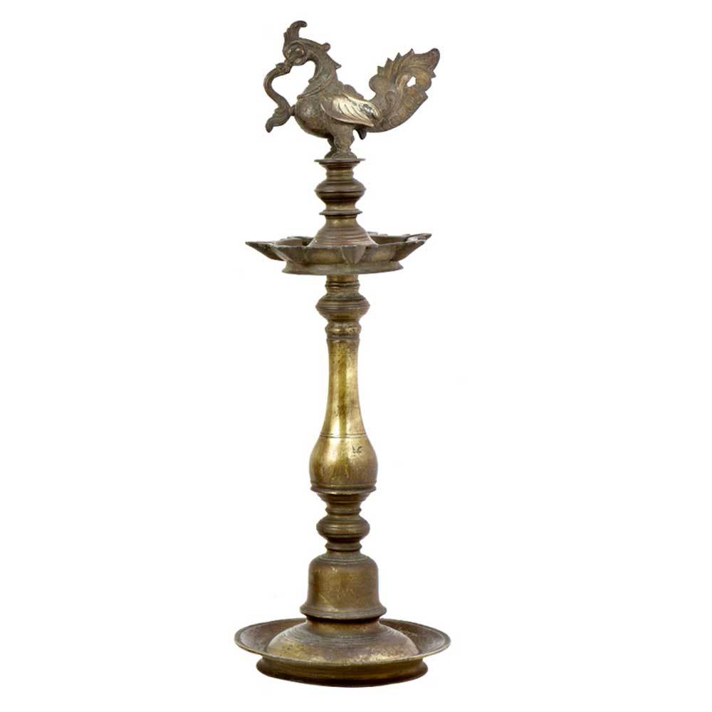 Brass Annapakshi The Divine Swan Oil Lamp. This Can Be Observed by the Design, the Symbols and the Figures Sculptured on This Lamp. It Adds Spiritual Flavor to Your Decor.Vegetable Oil, Mustard Oil or Desi Ghee can be Use to Light the Lamp with Cotton Wicks.