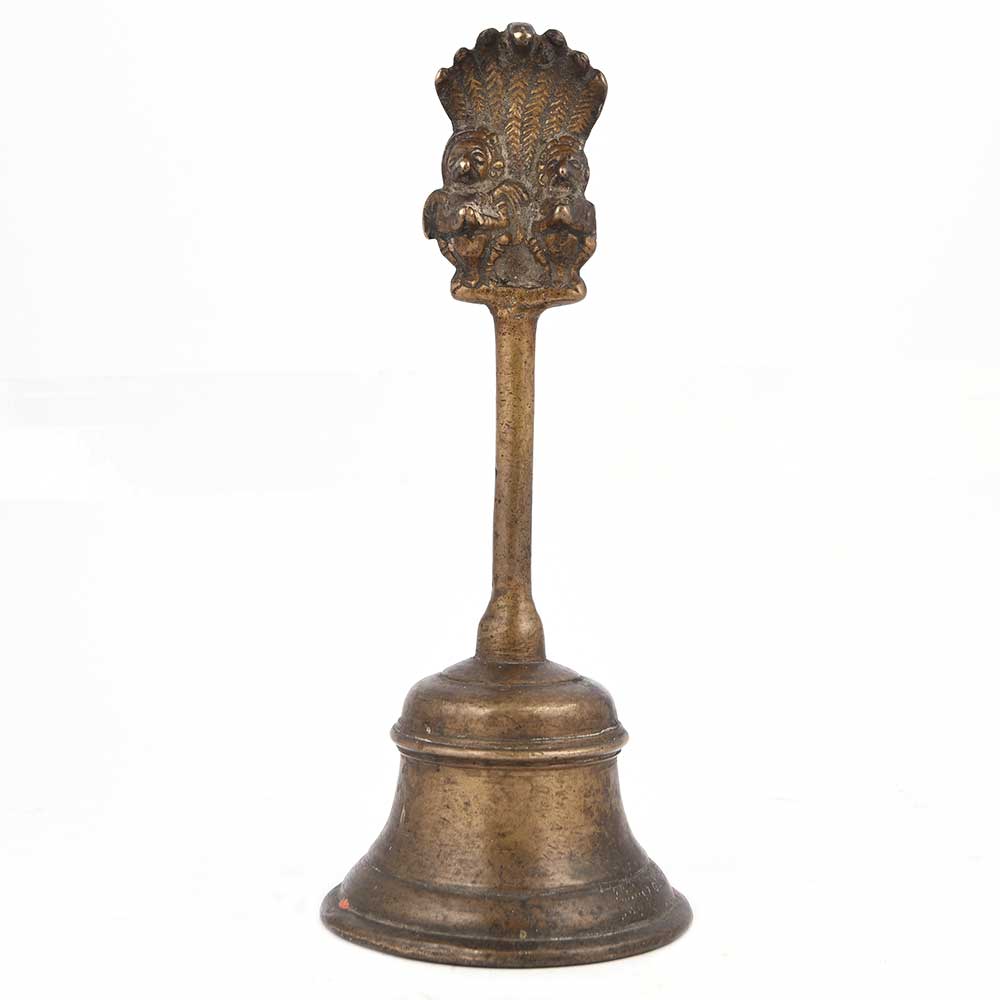 Traditional Brass Hand Bell With Carved Hanuman and Garuda Handle.An exquisite work of art by the skilled craftsman of India.It would be a great addition to your collection.