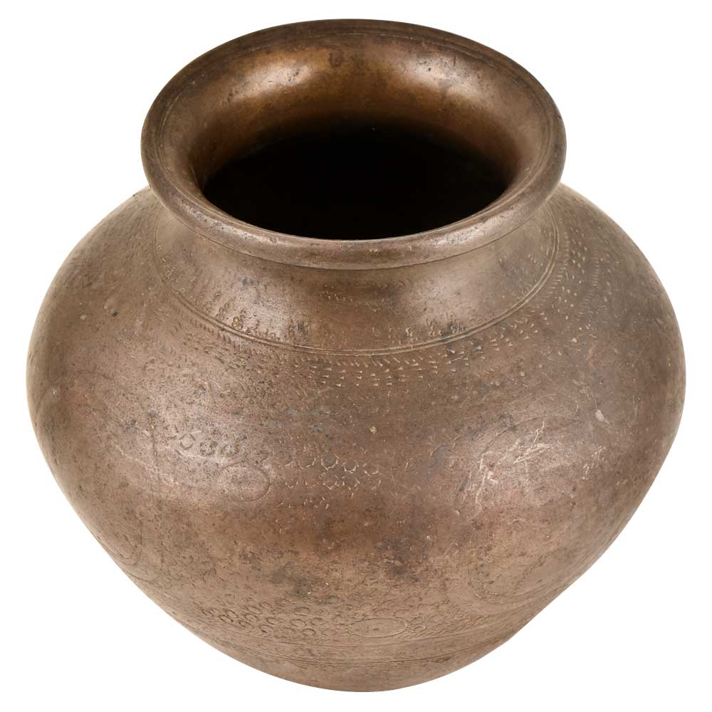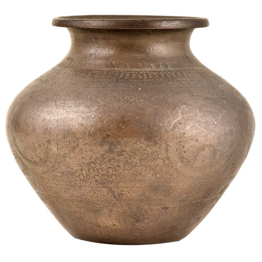 A very nice looking brass water pot with birds and geometric design borders engraved on the entire pot . Engraved Brass Water Pot (Lota) From North India is Handmade by the Local Artisans and Each Pot has a Distinct Design No Two Pots are Identical. The Pot Carries the Distinct Design of the Time. This Exquisite Piece is a Treat for Collectors and Makes for a Wonderful Decor Accent.