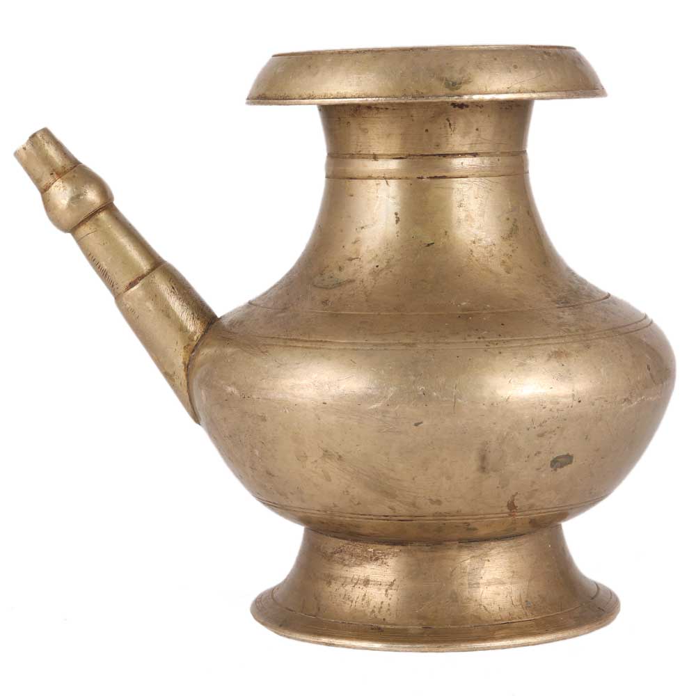 This ancient brass pot with a spout was originally used for serving and drinking water. It can be use for wedding decoration, as a business gift during diwali, new year and christmas. You may also use it as a flower container or planter.