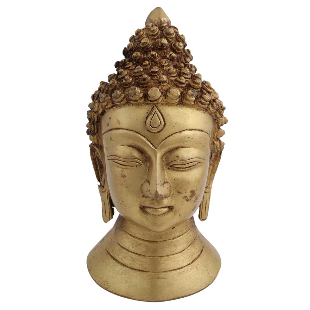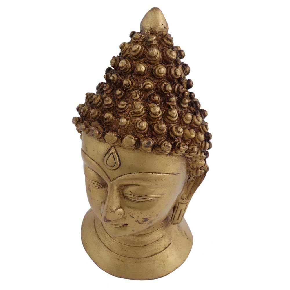 Handmade brass Buddha face head statue with curly hair tied in a bun and eyes closed in meditation with long hanging earlobes. Gift it to your near and dear ones on diwali, new year , Christmas, new year, wedding gift, birthday gift or house warming gift.