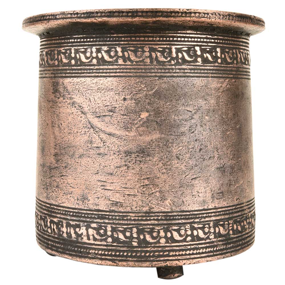 Old Brass Copper Ganga Jamuna Round Holy Water Panchamrit  Pot Copper Round Holy Water Panchamrit  Pot  for Collection Only At Collectible Vintage.