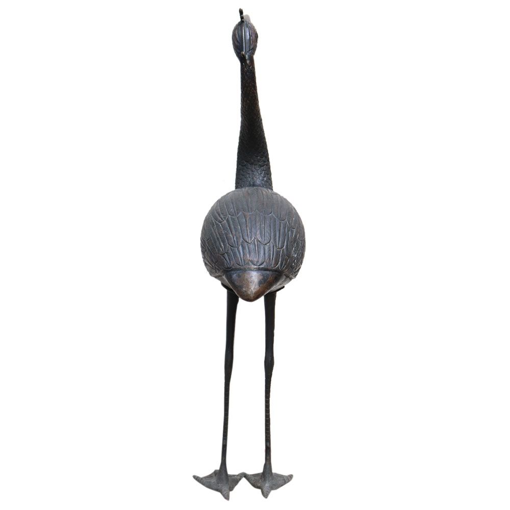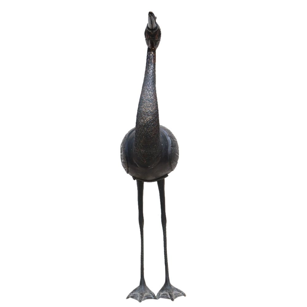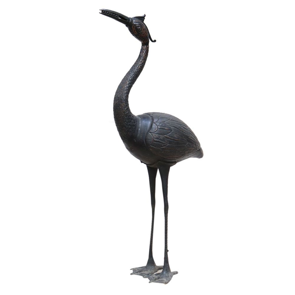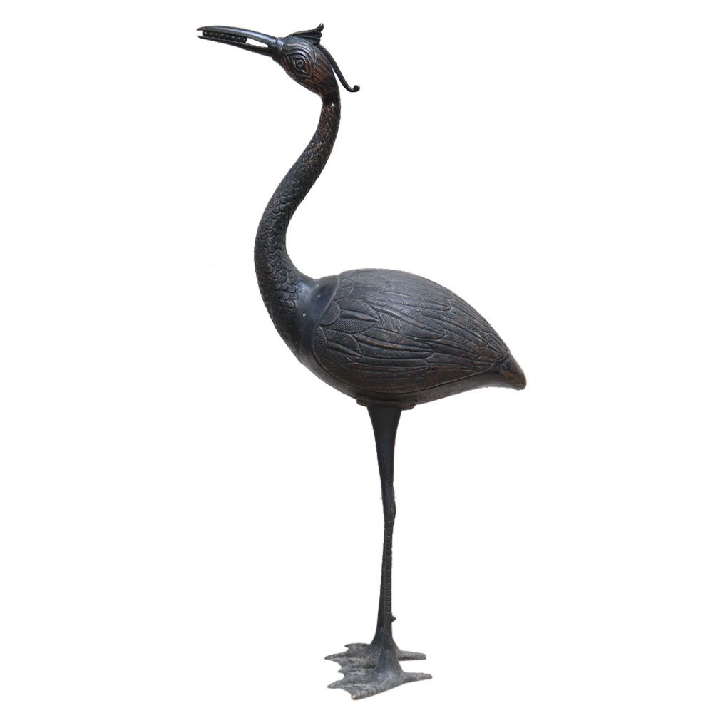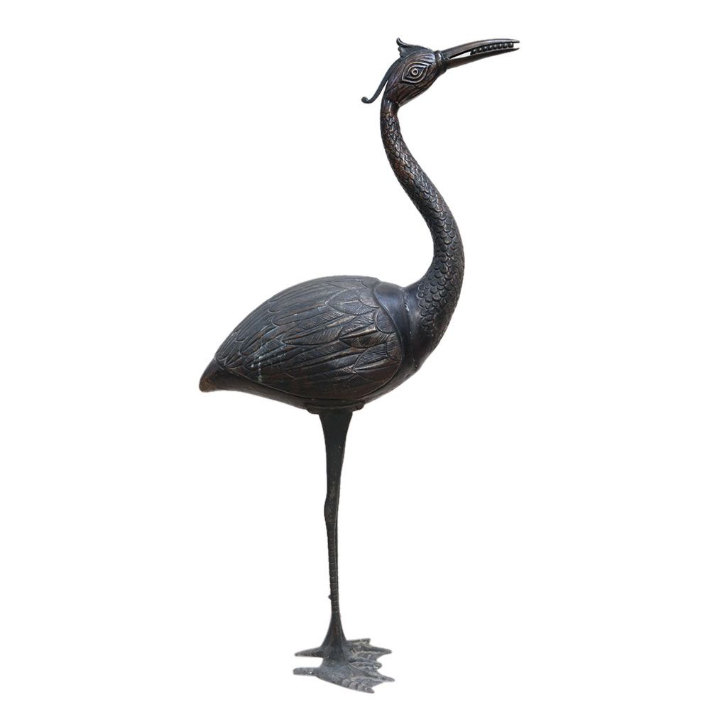 This Handcrafted brass Crane bird statue is designed with ornate feather details and sturdy legs. Use as self-standing statues in your home or as patio or garden decor outside. With its striking green patina finish and handcrafted, sturdy metal body construction with detailed embossing, this Crane adds a touch of elegance to any outdoor space.