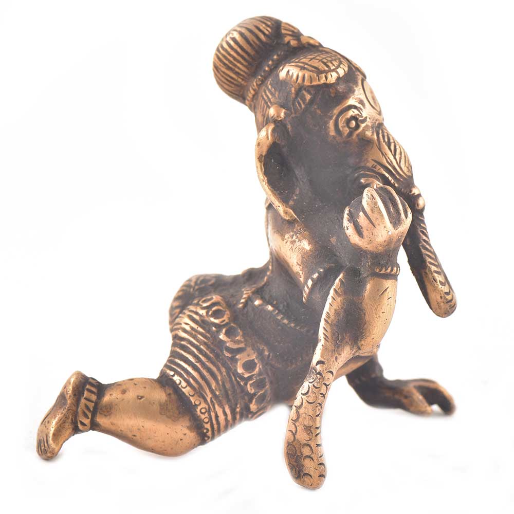 Lovely hand crafted brass statue of baby ganesha crawling is a rare and unusual brass statue.Crawling ganesha/bal ganesha - in this posture the lord ganesha is seen crawling like a baby. Baby means 'bal' in hindi,hence the name bal ganesha. Lord ganesha is the son of lord shiva and goddess parvati thus at times he is depicted as a baby by artists to enhance his image as a young kid.