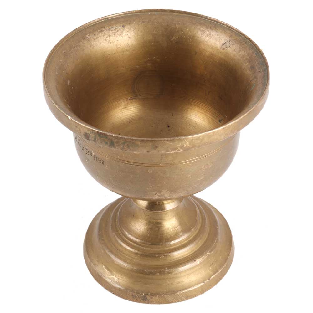 The round base of this designer brass mug is mounted on a circular base. It can be used to complement traditional decorations in the living room or dining room. Use it as a candle holder or a special gift for your friends and family.Â