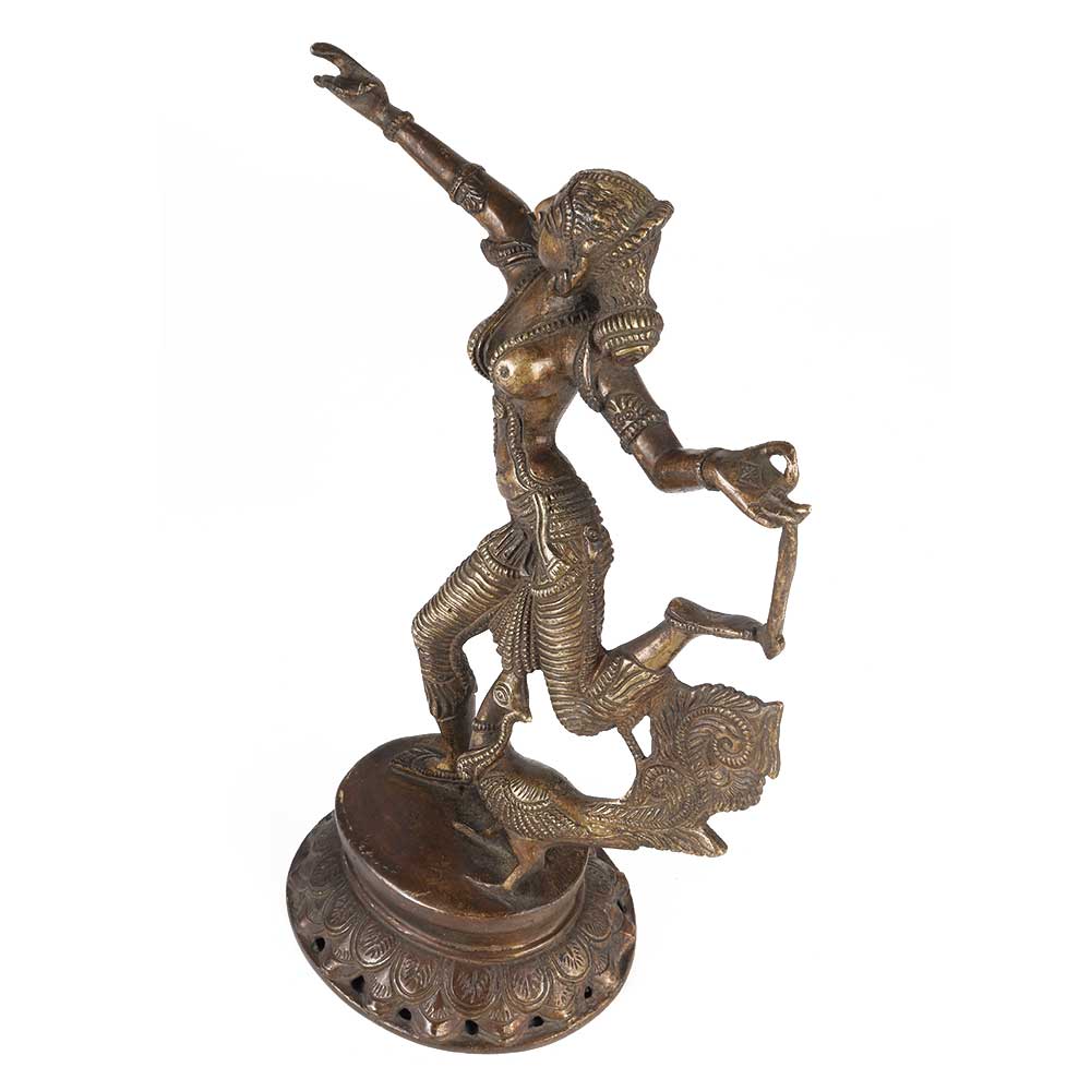 Brass Indian Dancing Lady statue with peacock figurine is perfect for decorating a workplace, office desk or home.  It could be viewed as a gift for your loved ones.