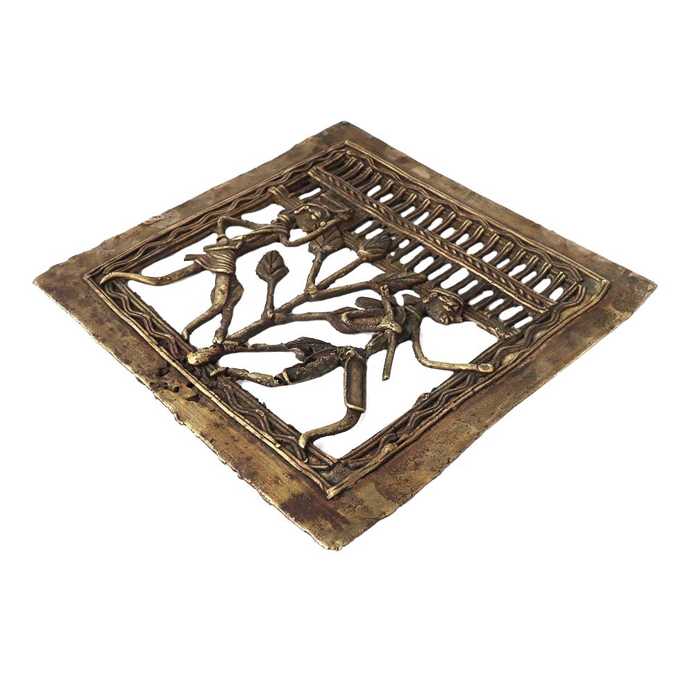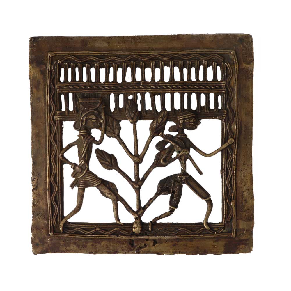 This wall decor frame is made of dhokra art made with dull brass by hand. Craftwork that is lovely and rustic and has a distinct ethnic appeal. The unique 13 stage process of Dhokra Bell metal making, which is entirely handcrafted, is the result of the original craft instinct passed down through the ages. Brass, nickel, and zinc are combined to create the Dhokra Bell metal alloy, which gives castings a vintage appearance. Excellent tool to use! Beautiful décor and unique gifts. A lovely work of art with a lovely decorative shape.