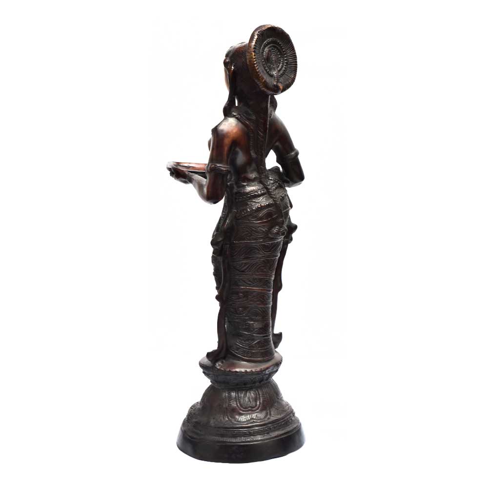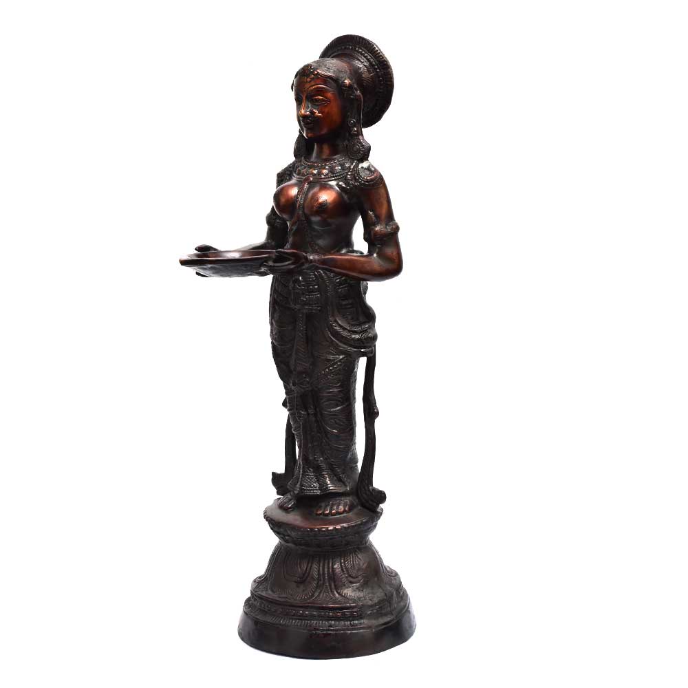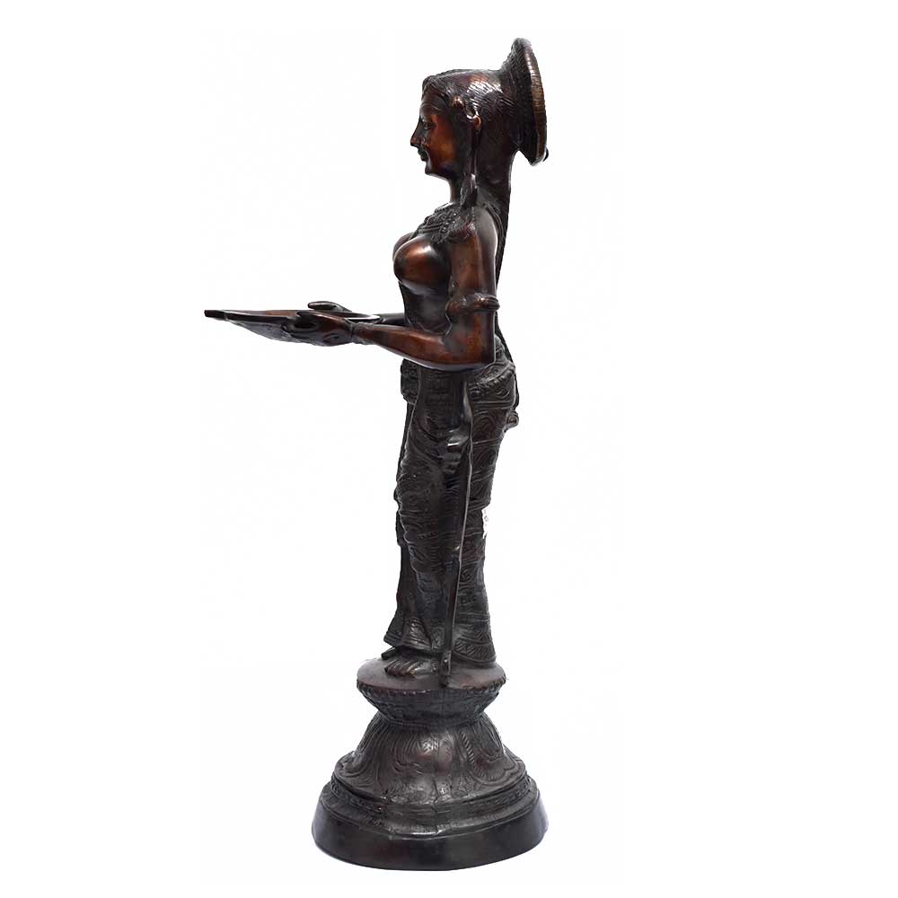 Brass Deep Laxmi diya is an ancient spiritual product. It can be used in conjunction with oil to illuminate your décor or home. This handcrafted metal craft is one-of-a-kind for gifts and decoration. This brass table - top diya depicts a beautiful lady in a traditional saree holding a diya in her hand. This is also a good gift idea for housewarming parties.
