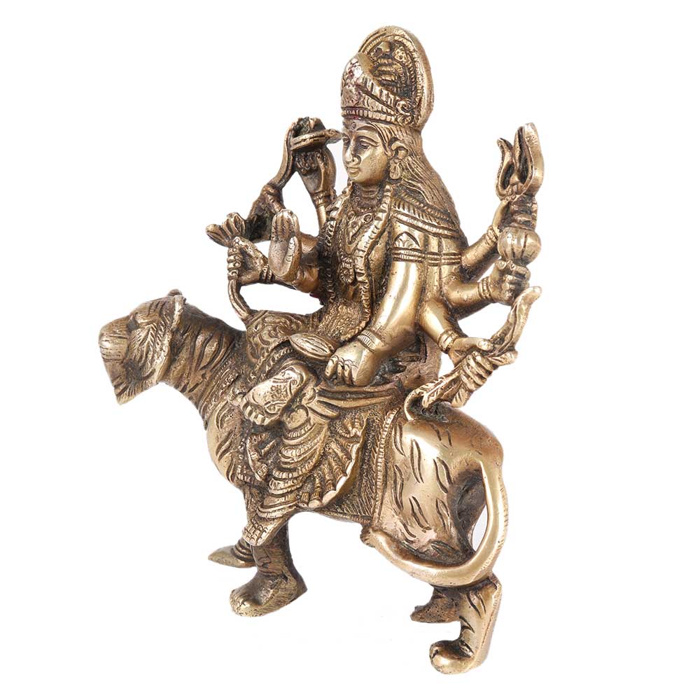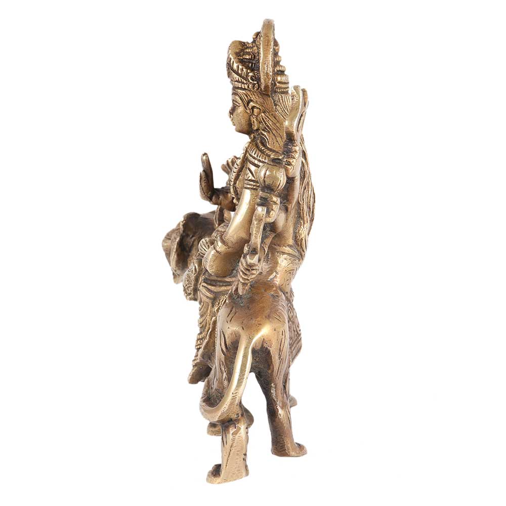• Brass Devi Durga Or Amba Statue Sitting On Lion