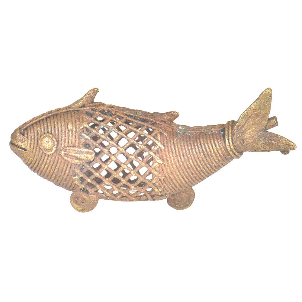 Dhokra art fish with rustic look is made of brass by the tribal or rural craftsmen of India. This fish is beautifully made and it can be used as statement piece on your centre table or side tables of your drawing room.