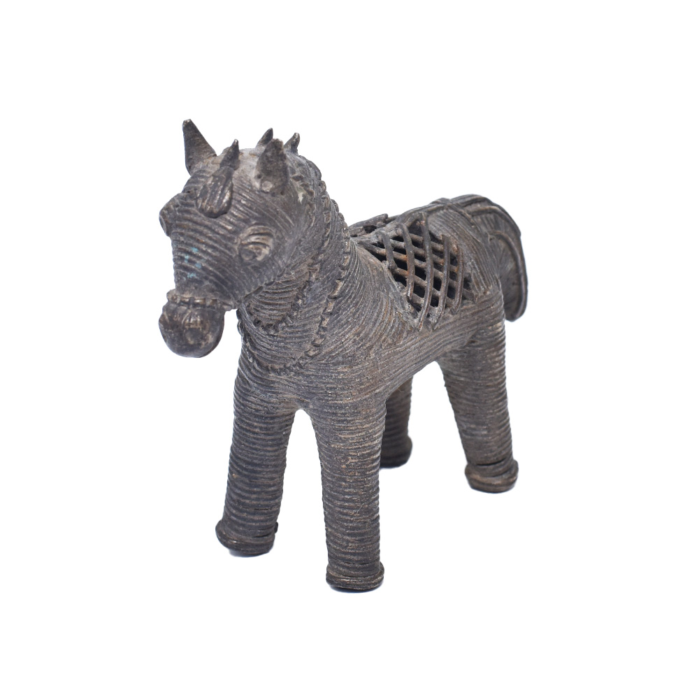 Horse Dhokra animal statue is beautiful and distinctive curio that will complement your decor. Dhokra is a stunning, age-old craft that has been produced using one of India's oldest traditional methods of metal casting for more than 4,000 years. In West Bengal, Madhya Pradesh, Chhattisgarh, and Odisha, metalworkers use the lost wax technique, also known as cire perdue. This craft has roots in the Harappan and Mohenjo-daro Civilizations of prehistory. The unique 13 stage process of Dhokra/Bell metal making, which is entirely handcrafted, is the result of the original craft instinct passed down through the ages. An alloy of brass, nickel, and zinc called "dhokra/bell metal" gives castings an aged appearance.