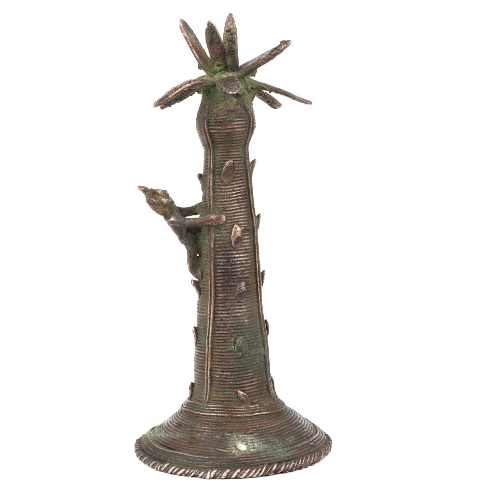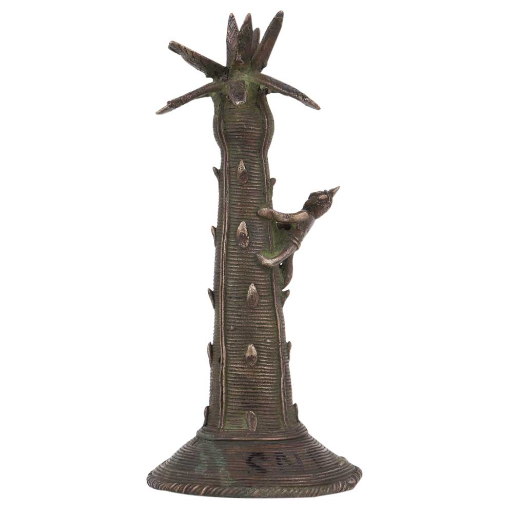 A very interesting brass Dhokra statue made by the local artisans of west Bengal using traditional tool, methods and equipments . The man climbing the tree is a local and is climbing the sailfi tree to extract the juice used in making a local alcoholic juice. Use it as a showpiece , place on the side table of your office or school reception area. Gift it to your near and dear ones who love collecting handcrafted products.