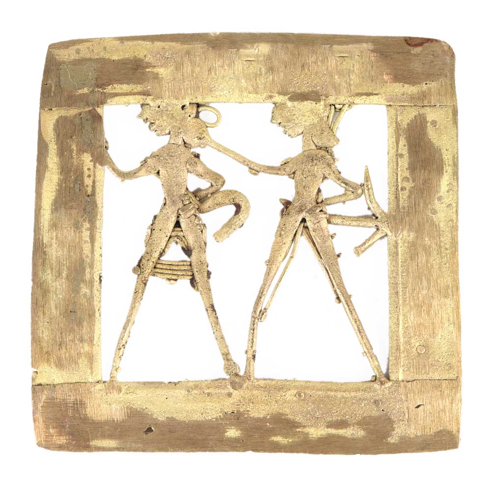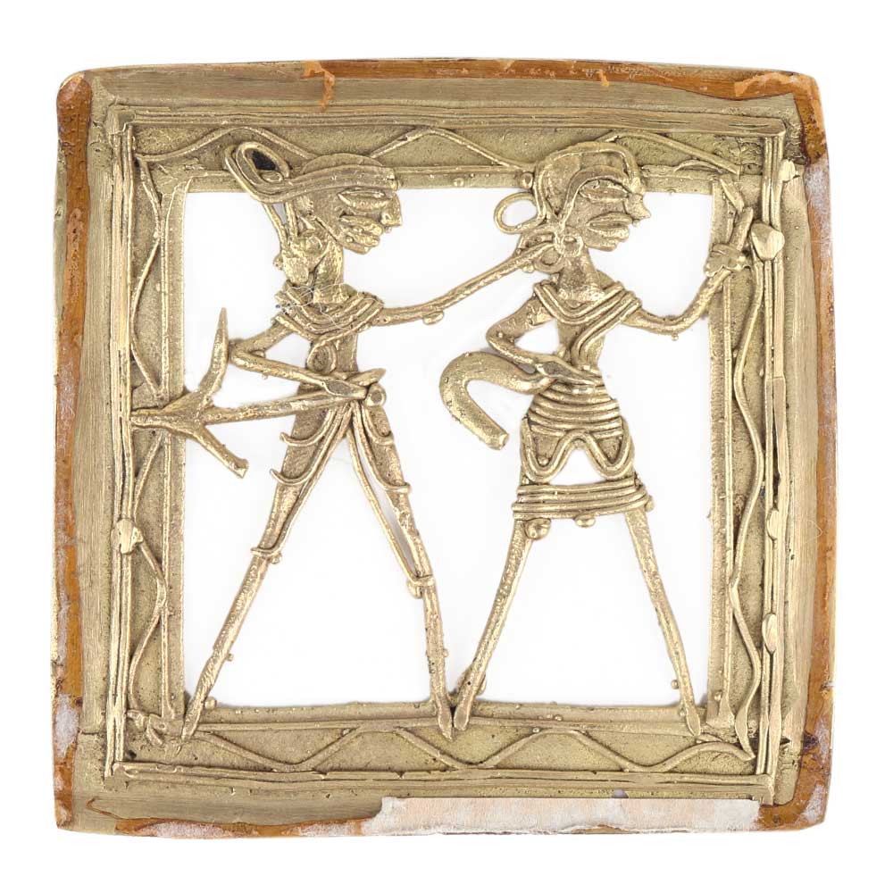 A fine example of expert craftsmanship this lovely brass dhokra wall art hanging depicting tribal farmer couple is sure to liven up your living room or the wall of any other room. Gift it to your near and dear ones on Diwali, new year or other special occasions.