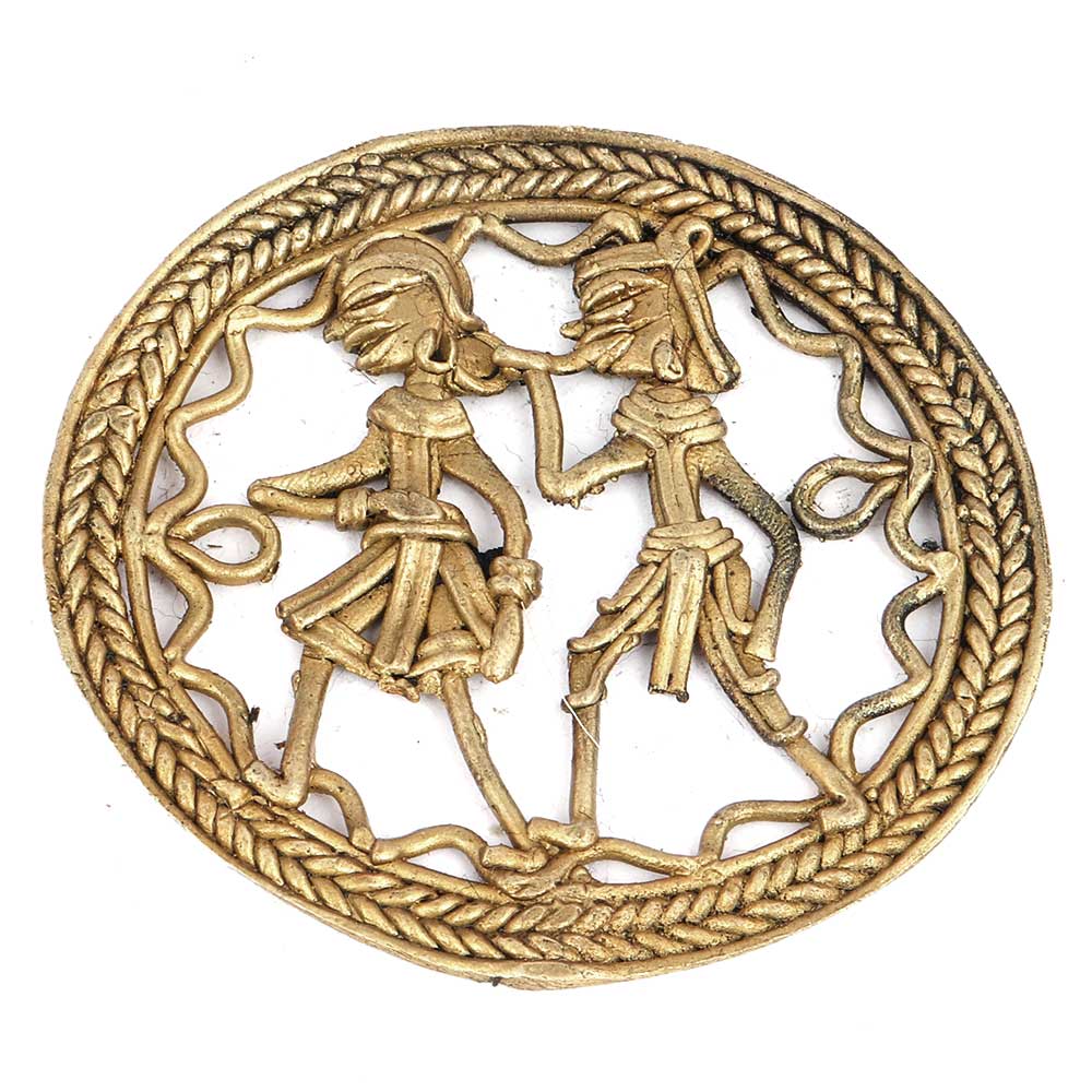 Brass Dhokra Wall Art Of Tribal Dancing Couple shows two figurines in the frame one is a tribal lady and the other is a male . This wall painting looks lovely in walls of your living room, bedroom, corridor, reception area. Gift it to near and dear ones ,corporate gift or a souvenir.
