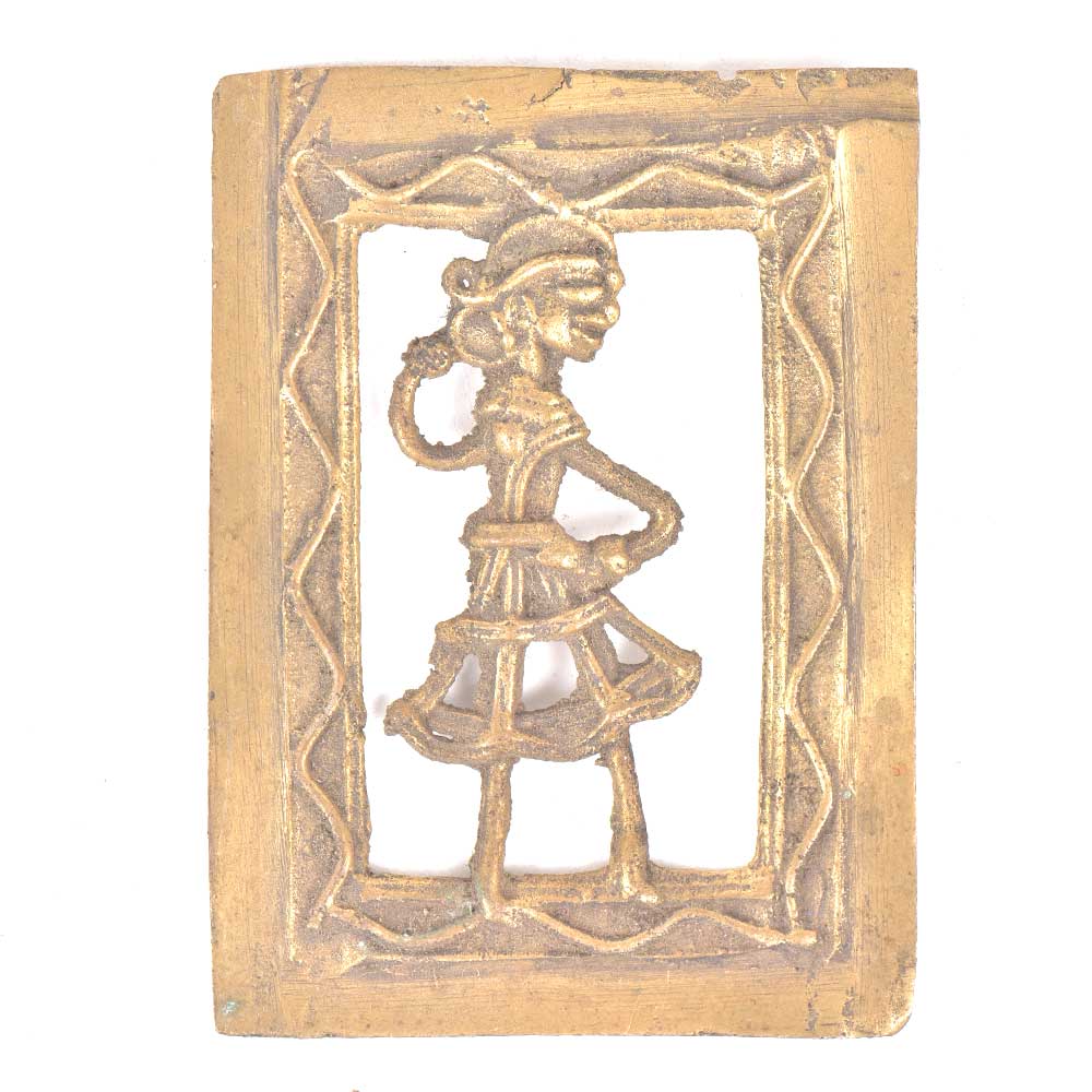 Handmade dhokra wall hanging tribal lady can be seen dancing, this amazing wall art is made of brass by the skilled craftsmen of India. This beautiful bronze wall art can be used for gifting, home decoration and many more.Â