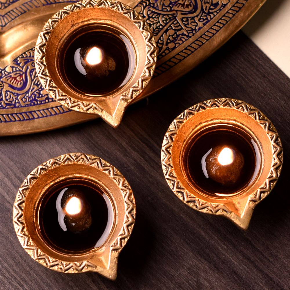 Light up your sacred spaces with this Brass Diwali Diya featuring a Swastika design, symbolizing prosperity, positivity, and divine blessings. Handcrafted in solid brass with a polished golden finish, this oil lamp adds both elegance and auspicious energy to rituals, mandir décor, and festive celebrations. Compact yet meaningful, it is perfect for Diwali and other cultural occasions.