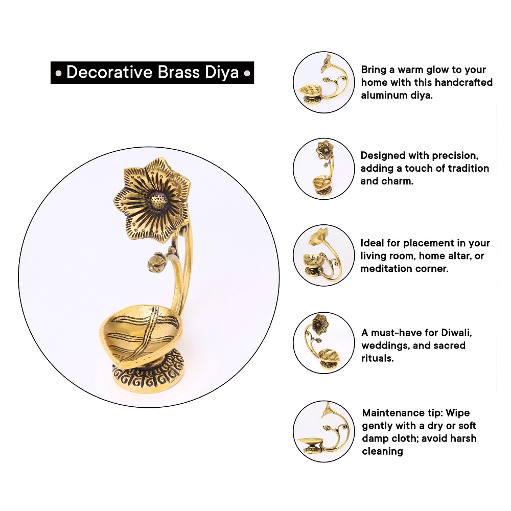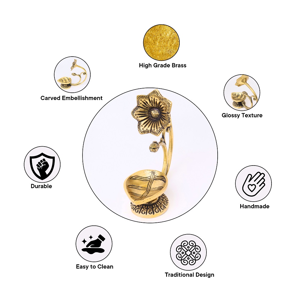Single-petal Lamp or Diya that has been exquisitely carved. A stunning piece for the temple and living room. Get the Lord's divine blessings by bringing it home. intricately detailed carvings. If you give one to a loved one or keep one for yourself, make sure to fill it with joy and prosperity.