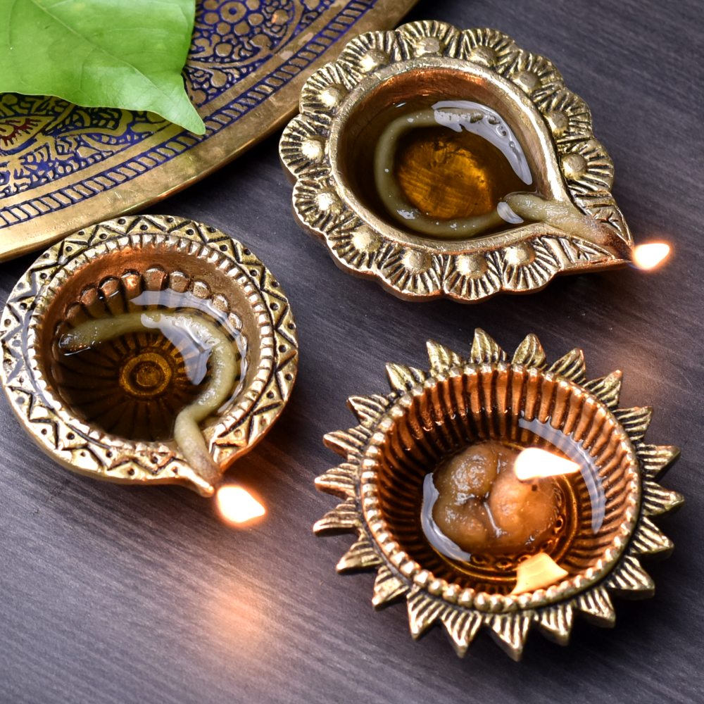 Light up your sacred spaces with these Brass Diyas for Diwali Decoration, intricately designed to combine devotion with artistry. Made from solid brass and finished in a radiant golden polish, these designer oil lamps feature traditional floral-inspired detailing that reflects cultural richness and auspicious charm. Compact in size yet impactful in presence, they are perfect for Diwali décor, temple rituals, or as timeless festive gifts.