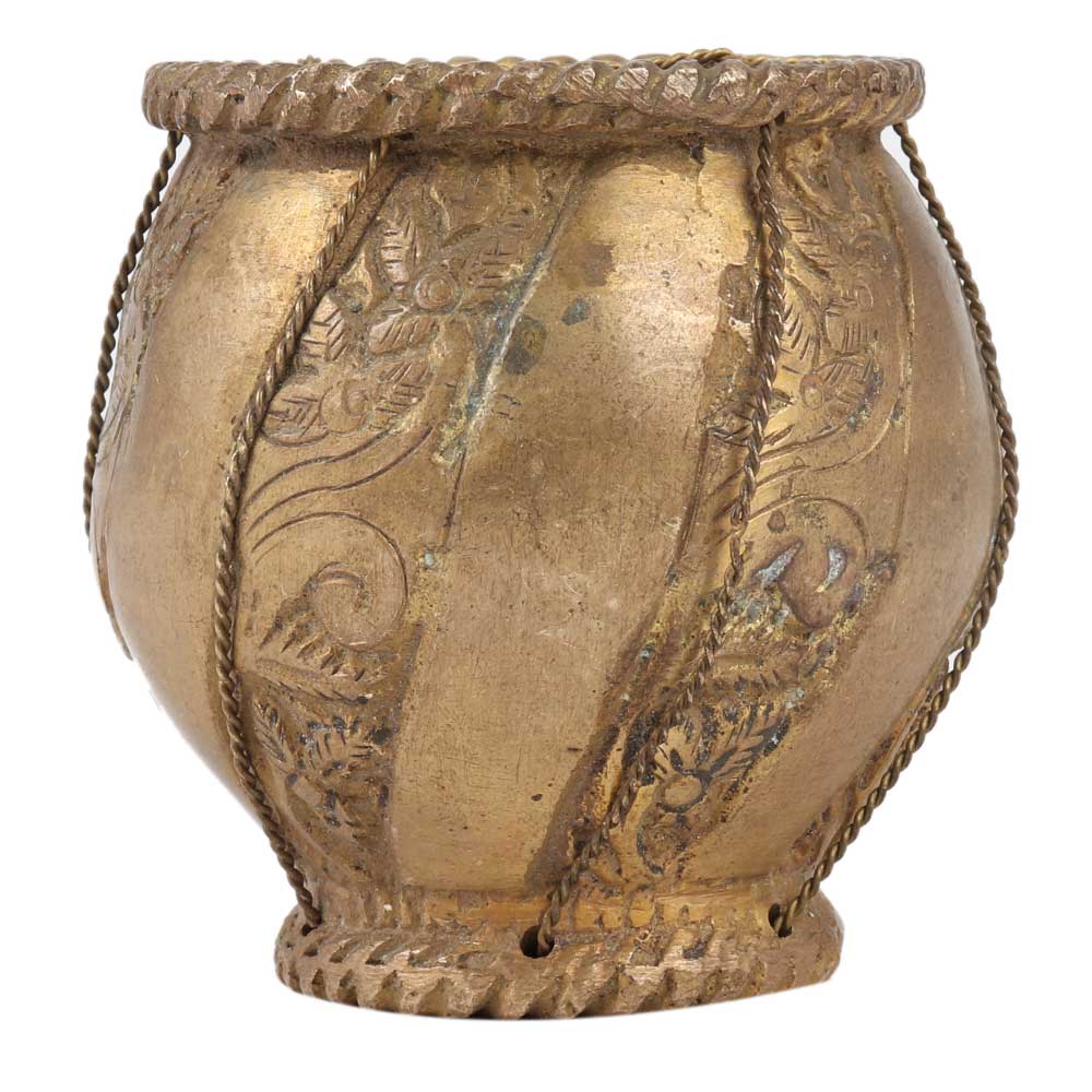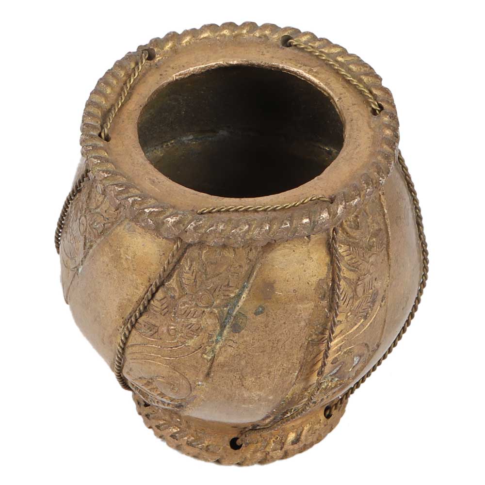 Handcrafted golden brown brass etched pattern drum planter pot is suitable for indoor pots for living rooms, flower pots for living rooms, plant pots in balconies, patios, offices and rooms.