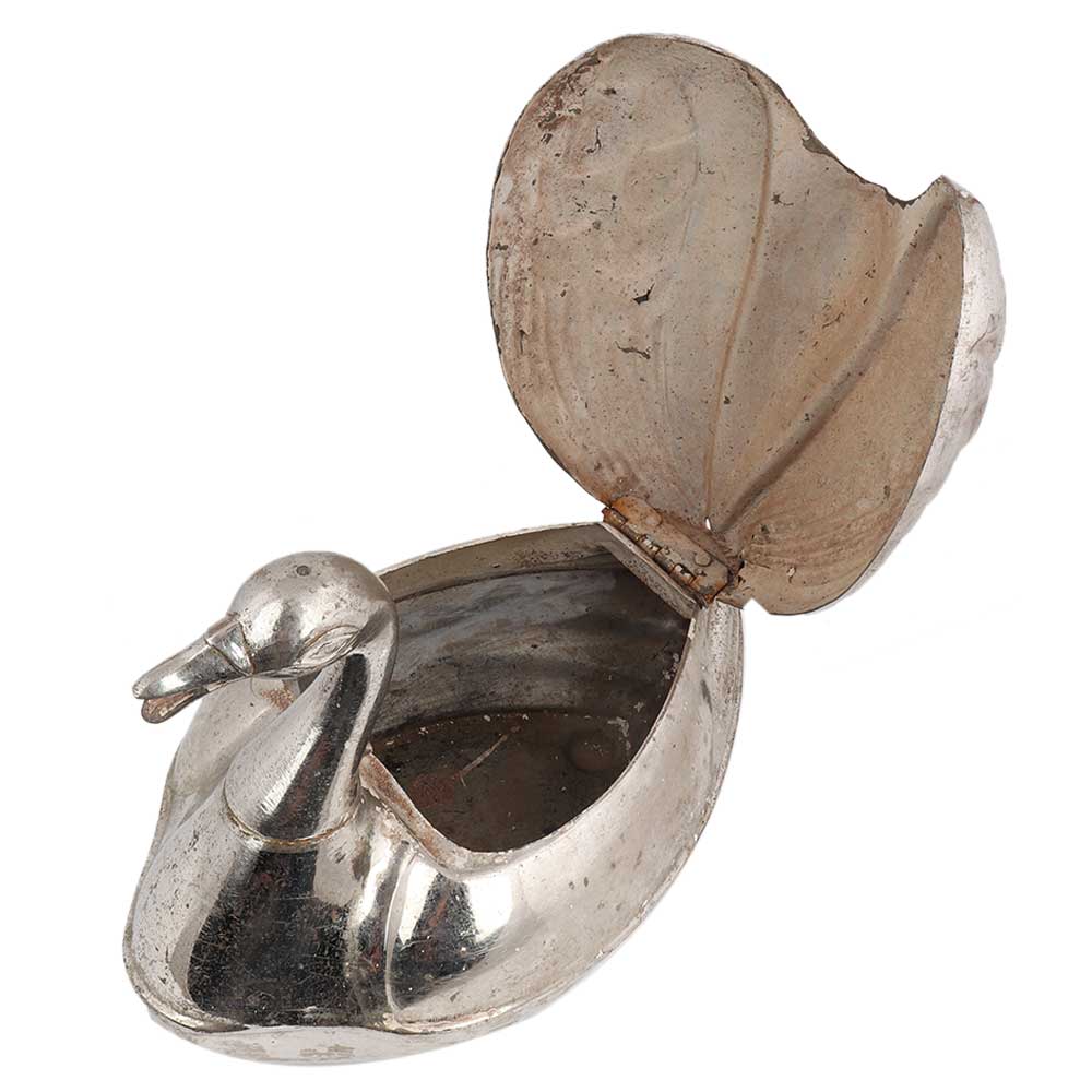 Brass Duck Storage Box Silver Nickel plated handmade by local artisans using traditional tools and methods . It is a multi storage utility box, storage box, spice box, jewelry Box, Diwali gift, wedding gift for your near and dear ones. It comes with a lovely nickel plating.