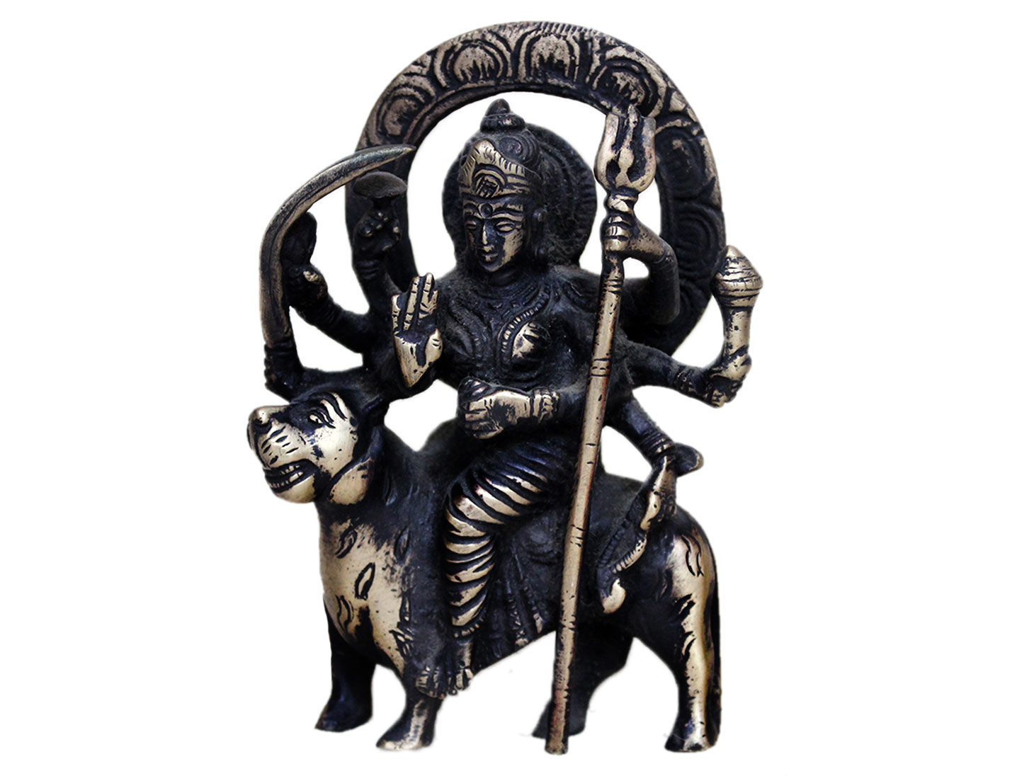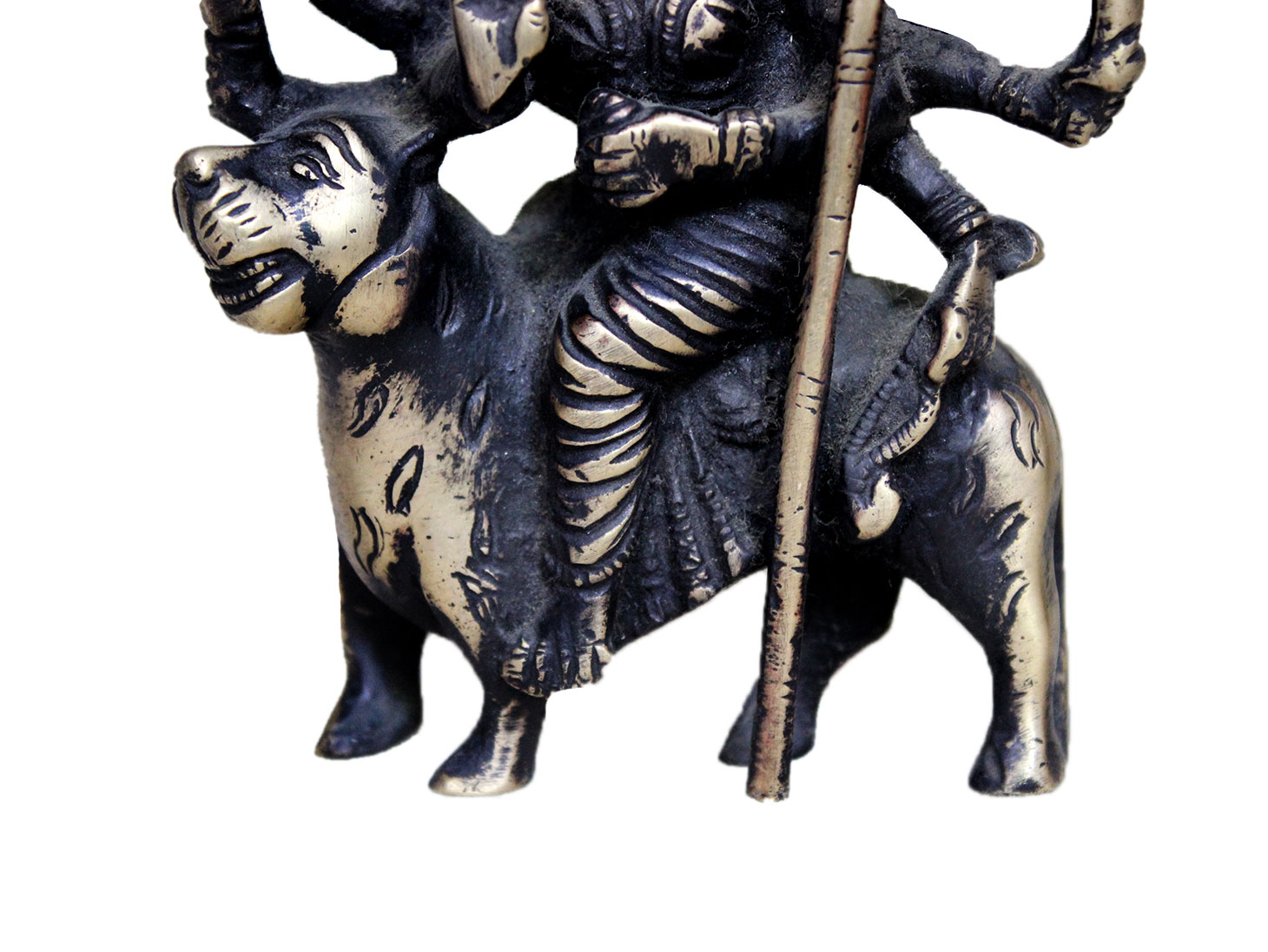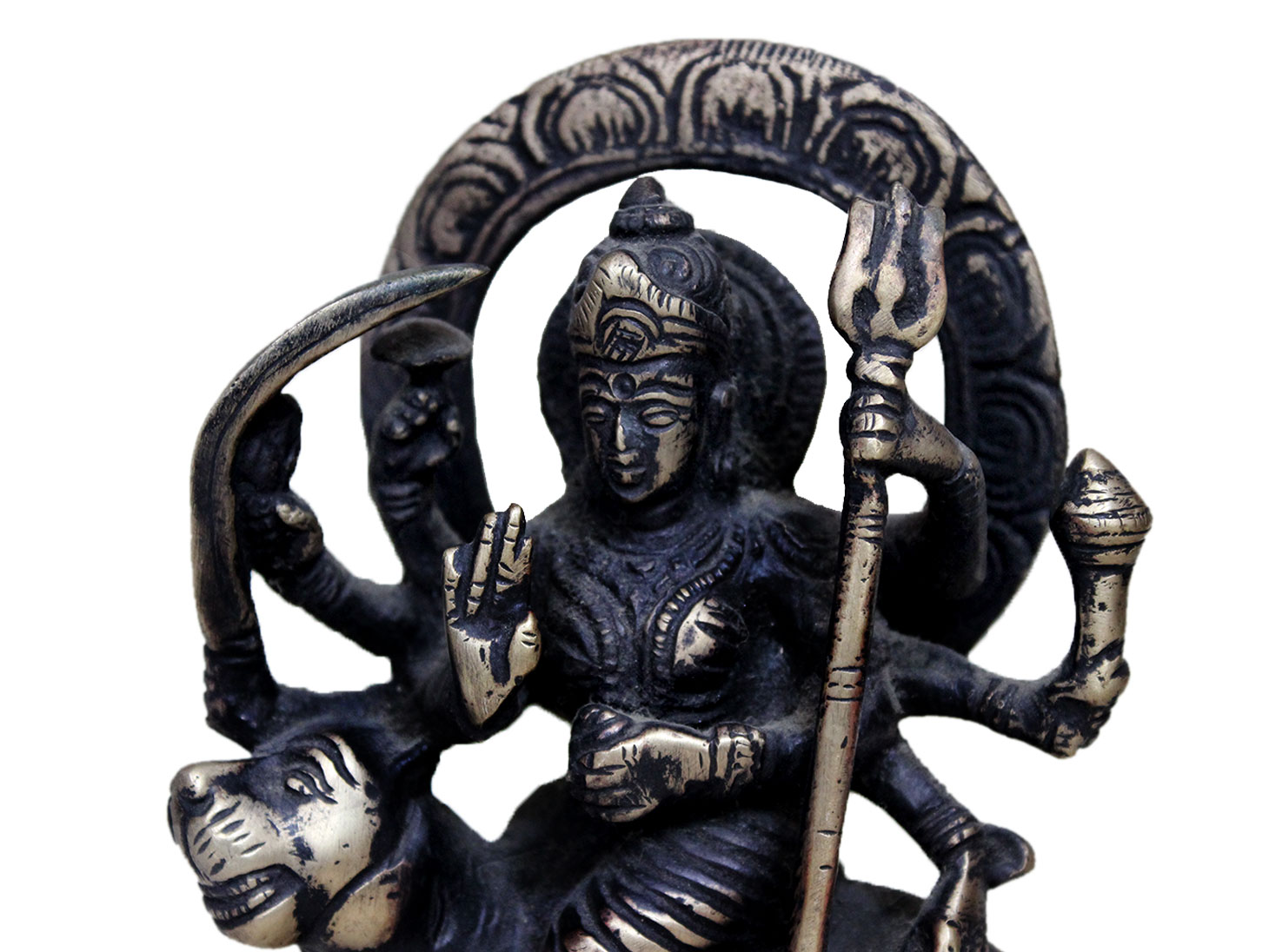 . Brass Durga. Finely Done to Get That Peaceful Expression on the Face. Brings Instant Peace At a Moment Glance. Fills the Atmosphere with Peace and Positive Energy. Handmade. It is More Than a Statement Piece.