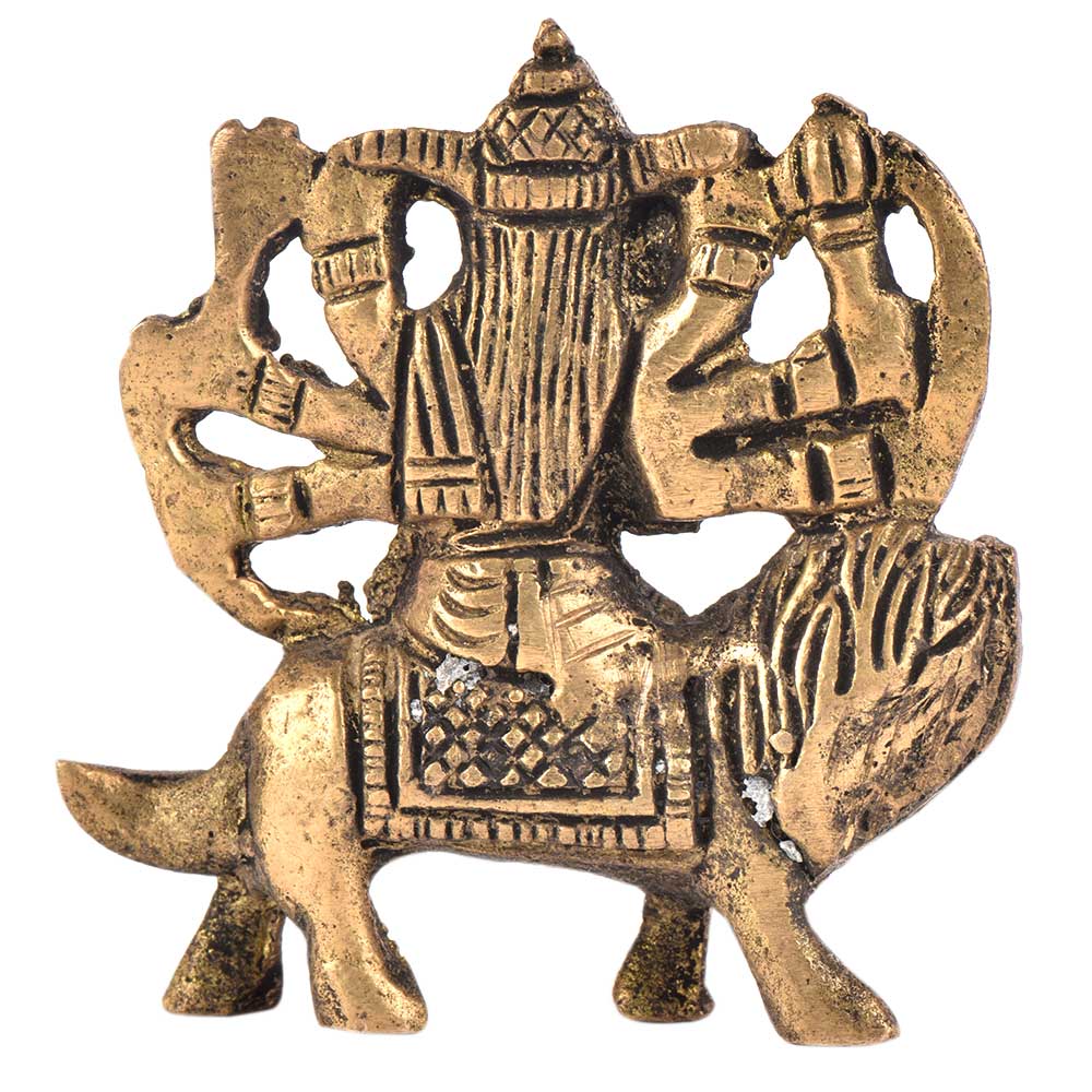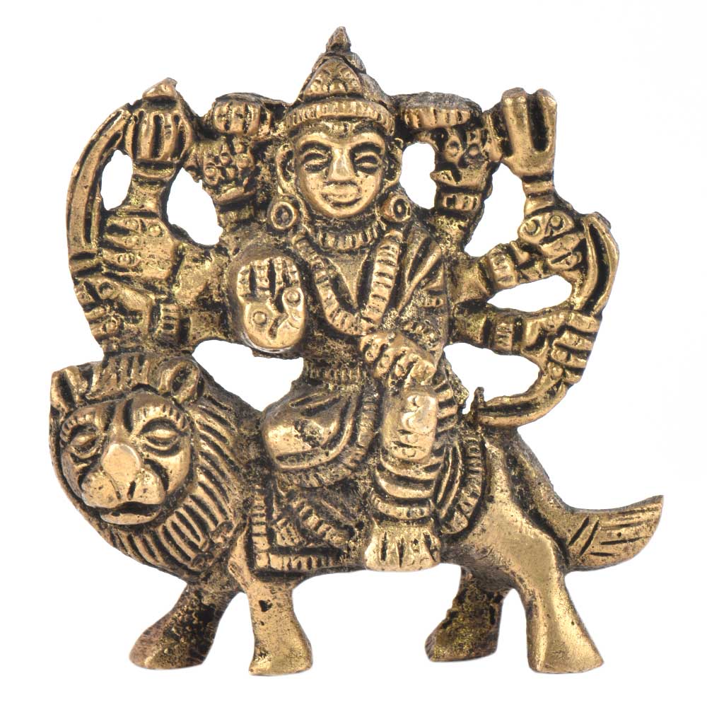 Durga Maa figurine is sitting on the tiger and this figurine is made very beautifully. This figurine is made of brass and is handmade by the skilled craftsmen of India. This durga maa figurine has 8 hands holding weapons in her hands.
