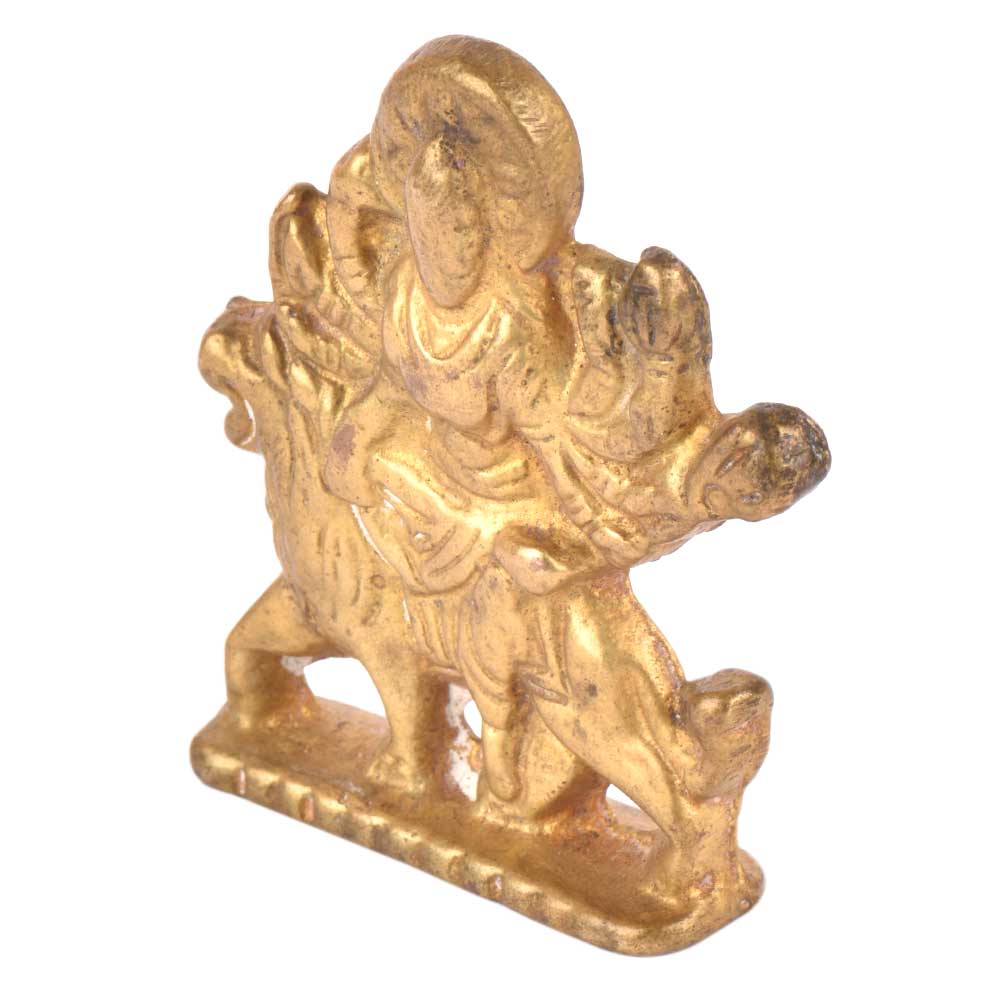 Durga Maa figurine is sitting on the tiger and this figurine is made very beautifully. This figurine is made of brass and is handmade by the skilled craftsmen of India. This durga maa figurine has 8 hands holding weapons in her hands.