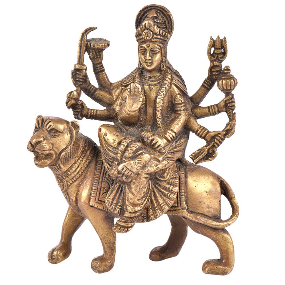 Brass Statue of Ma Durga. The Handmade Brass Durga Devi Hindu Goddess Statue Catches the Eye When Placed on the Altar. The Beauty of This Statue Makes It An Ideal Decorative Statue for Those Who Do Not Subscribe to the Hindu Faith but Wish to Bring Some Indian Culture to Their Decor.