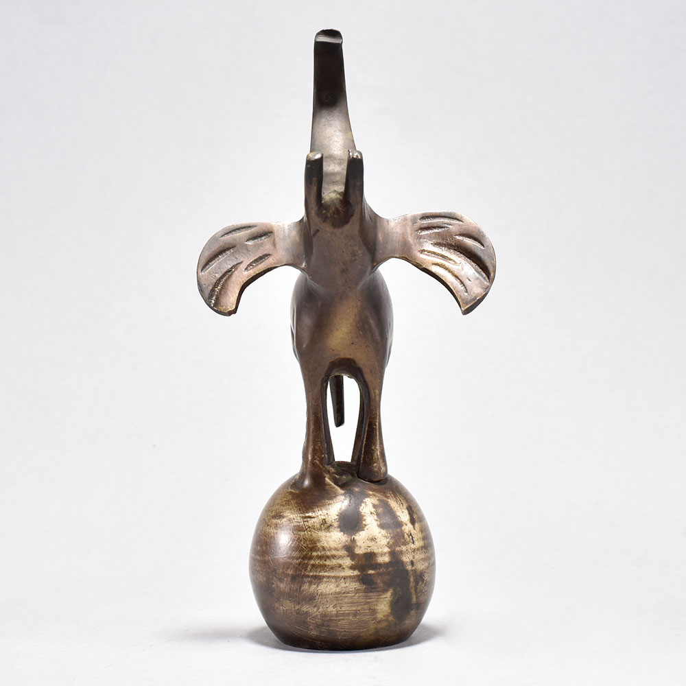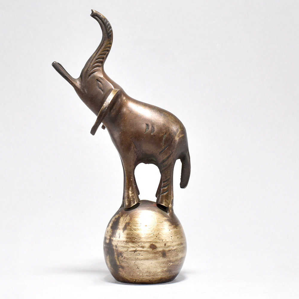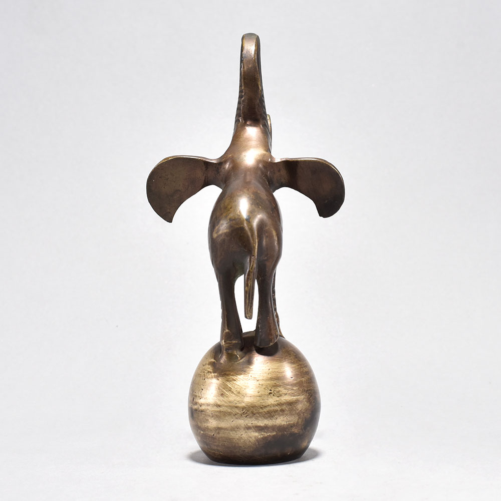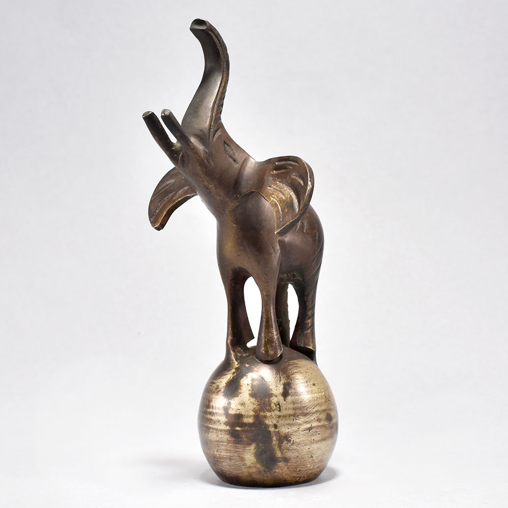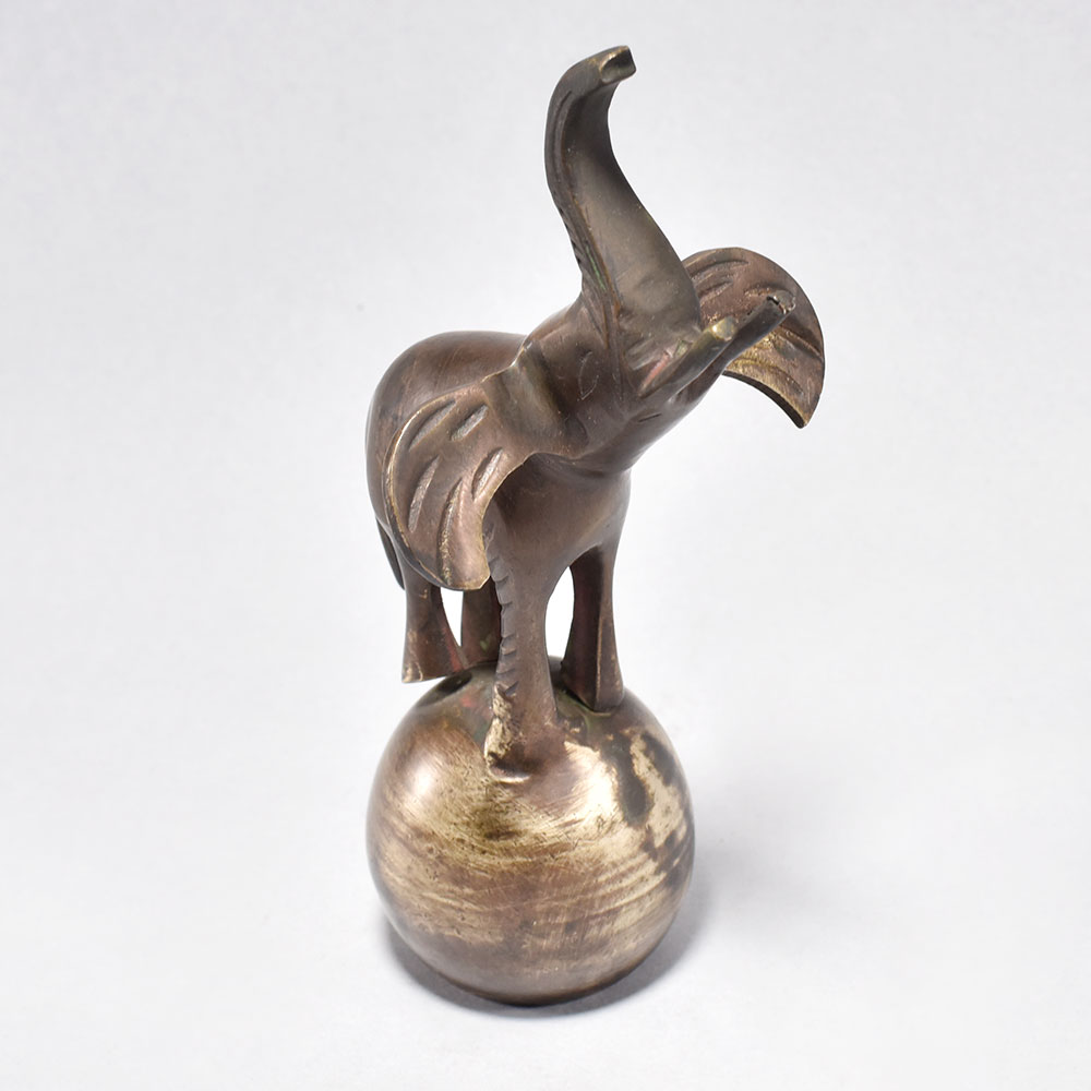 Bring the Strength and Luck of the Elephant into Your Home Elevate your space with the Brass Elephant on Ball Sculpture, a captivating work of traditional Indian craftsmanship. Crafted from vintage, antique brass, this detailed figurine features Intricate, ornate carvings adorning the elephant's body A smooth, polished surface that radiates an elegant glow The elephant's raised trunk, a symbolic gesture of greeting and good fortune In Hindu culture, the elephant is revered as a symbol of strength, wisdom, and luck. Perched atop a smooth brass ball, this sculpture represents stability, balance, and the world itself. Display this magnificent piece to invite the positive energy and blessings of the elephant into your home. Whether used for decor or gifting, this brass elephant sculpture is a stunning representation of the elephant's noble spirit. Embrace the power and good fortune of this majestic animal, and let its presence inspire and uplift you.