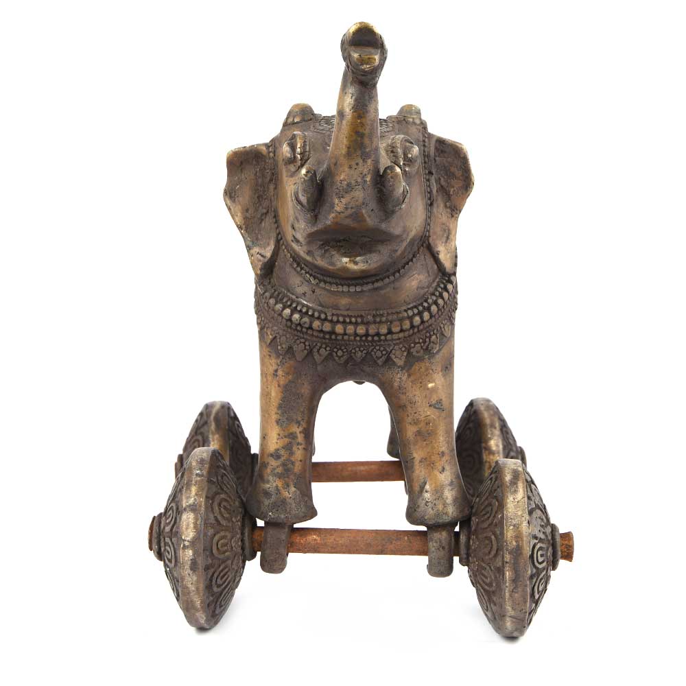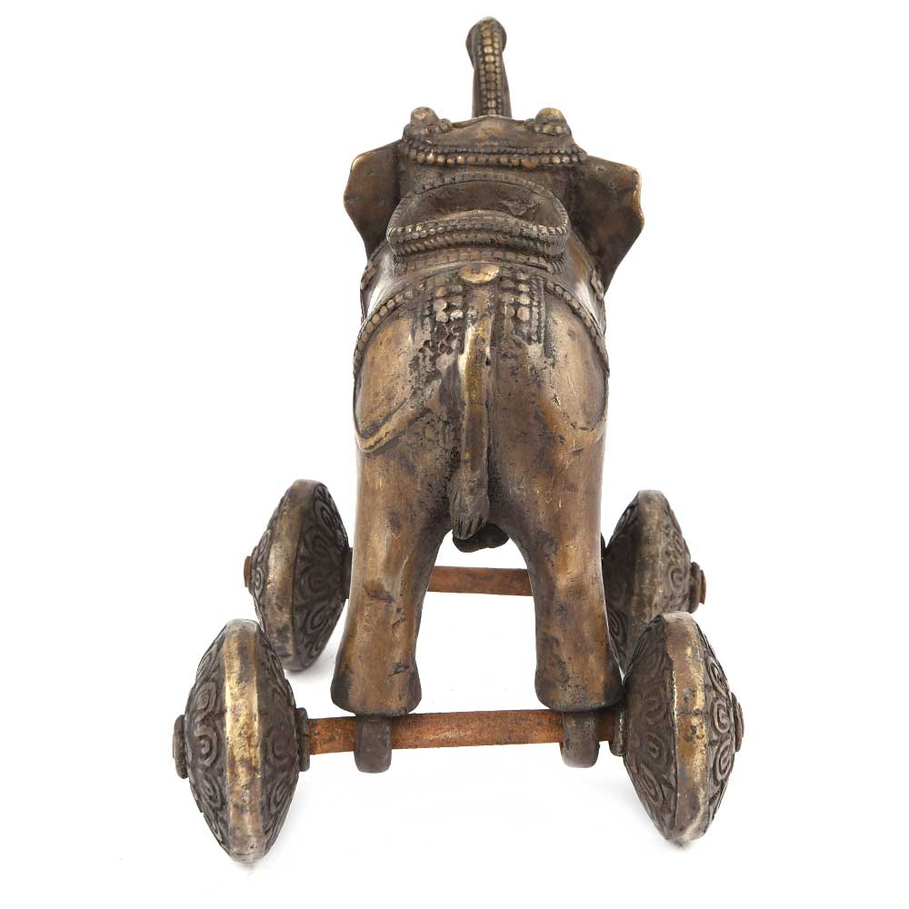 Beautiful Asian Bronze Temple Toy Elephant on Wheels. Traditionally Given to Children to Occupy Them While Their Parents Were Attending Religious Services.